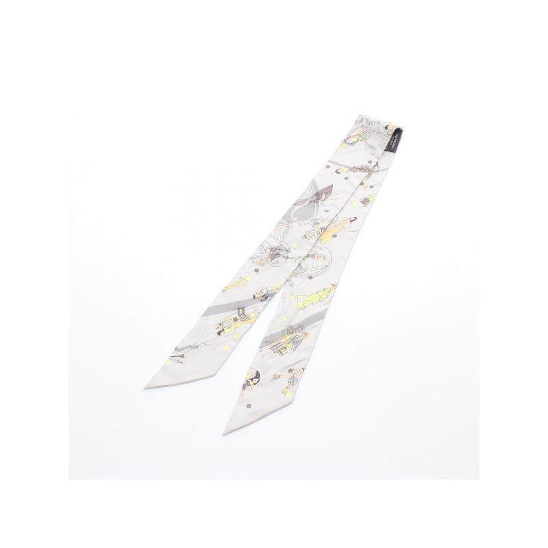 中古Hermes爱马仕女B级9新twilly斜纹布丝绸围巾/丝巾灰色