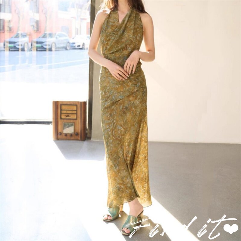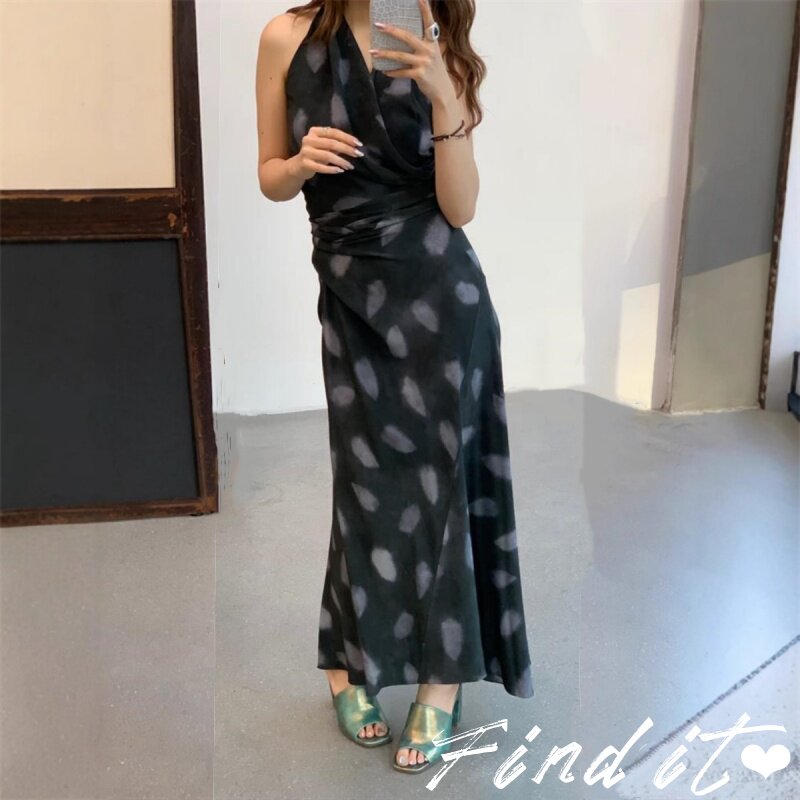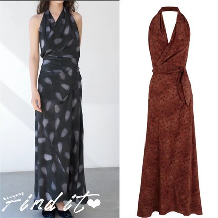 真丝Find轻奢气质款西班牙丝滑性感挂脖系带长裙 无袖优雅连衣裙