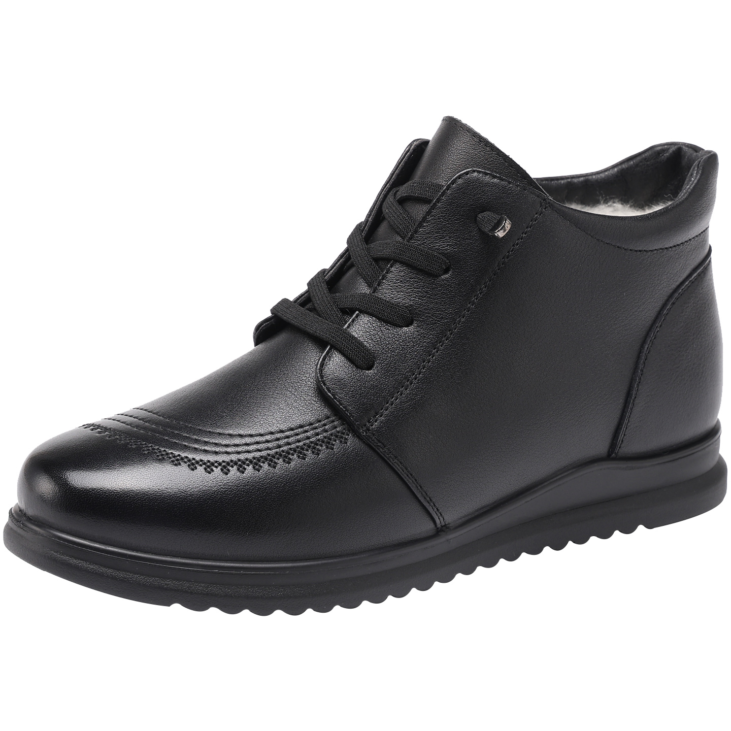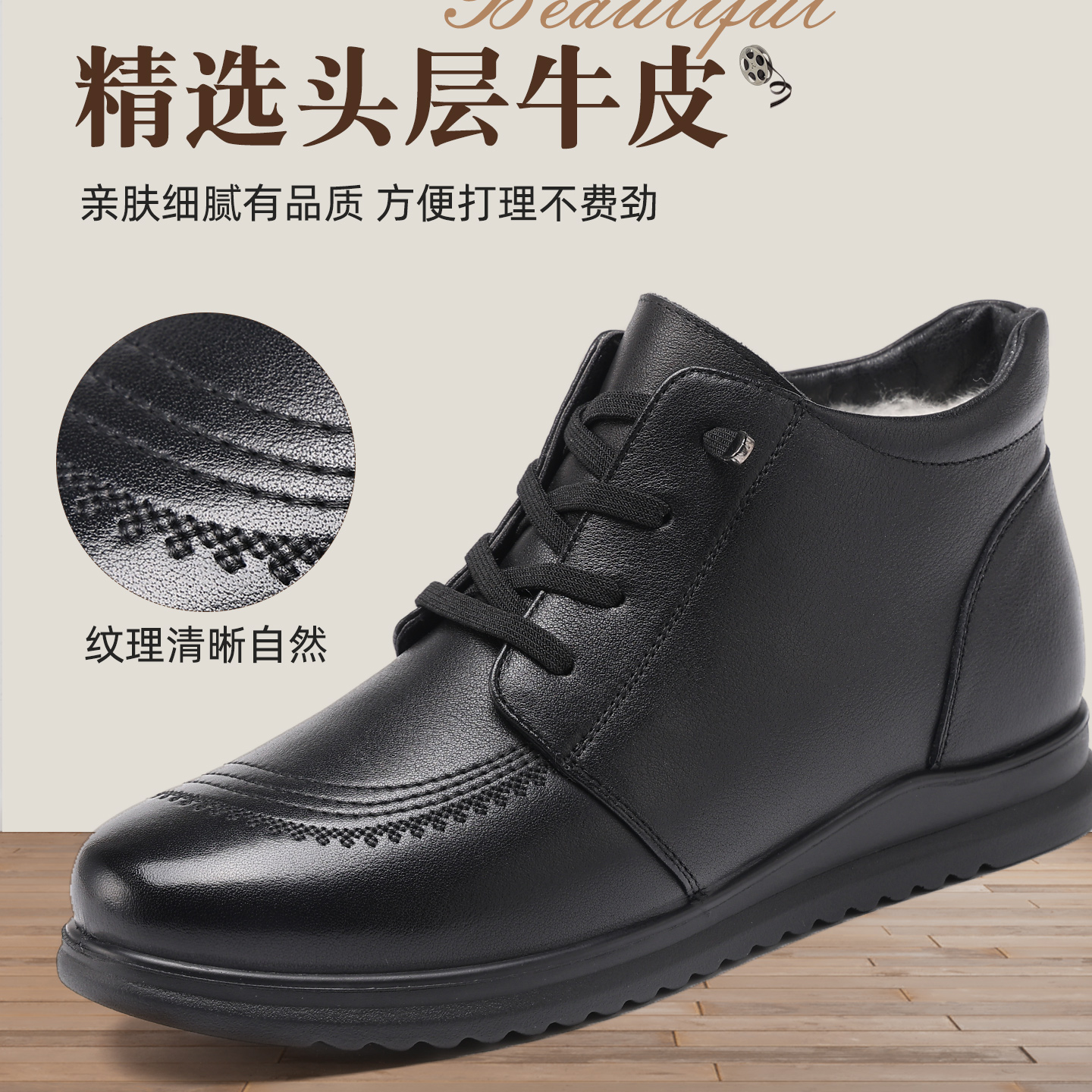 真皮妈妈棉鞋女冬加绒靴子软底保暖羊毛短靴中老年大码41到42防滑