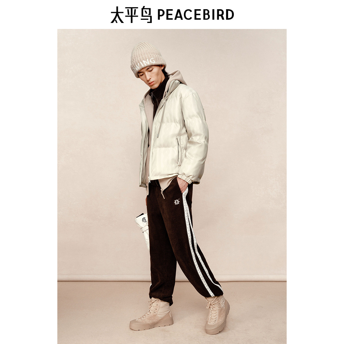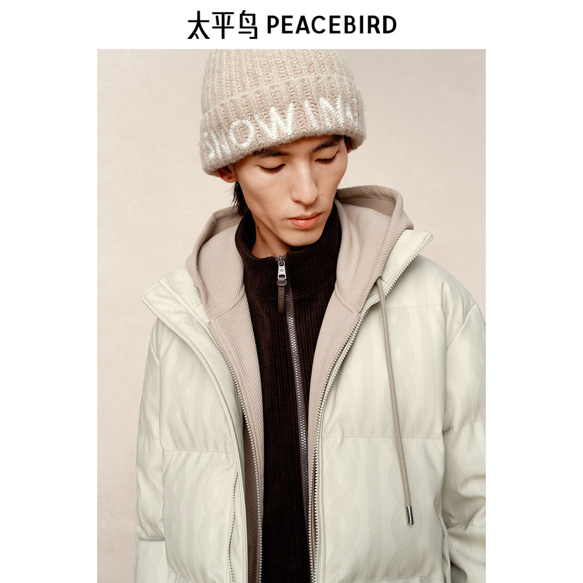 【商场同款】太平鸟男装 冬季新款PU印花休闲羽绒服潮 B1ACE4305