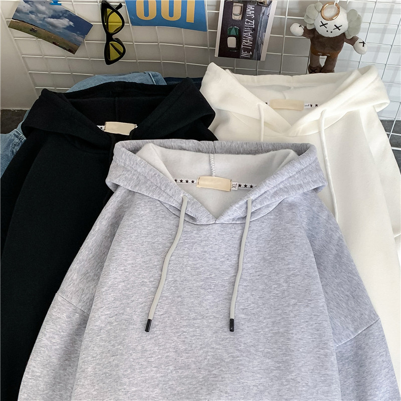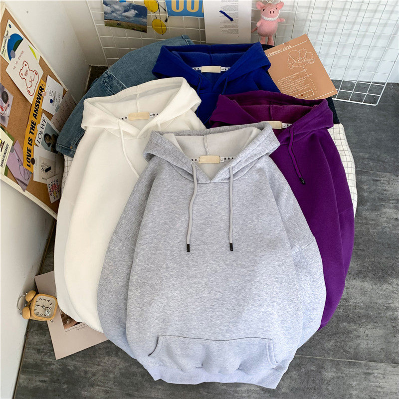 bf网红风新款纯色卫衣男女套头春秋学生休闲韩版炸街带帽加绒帽衫
