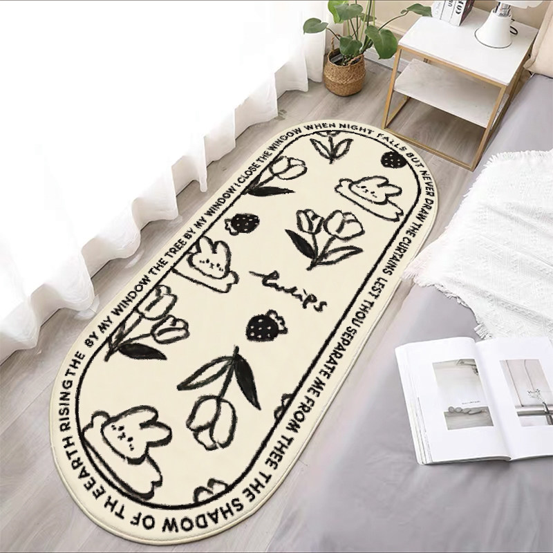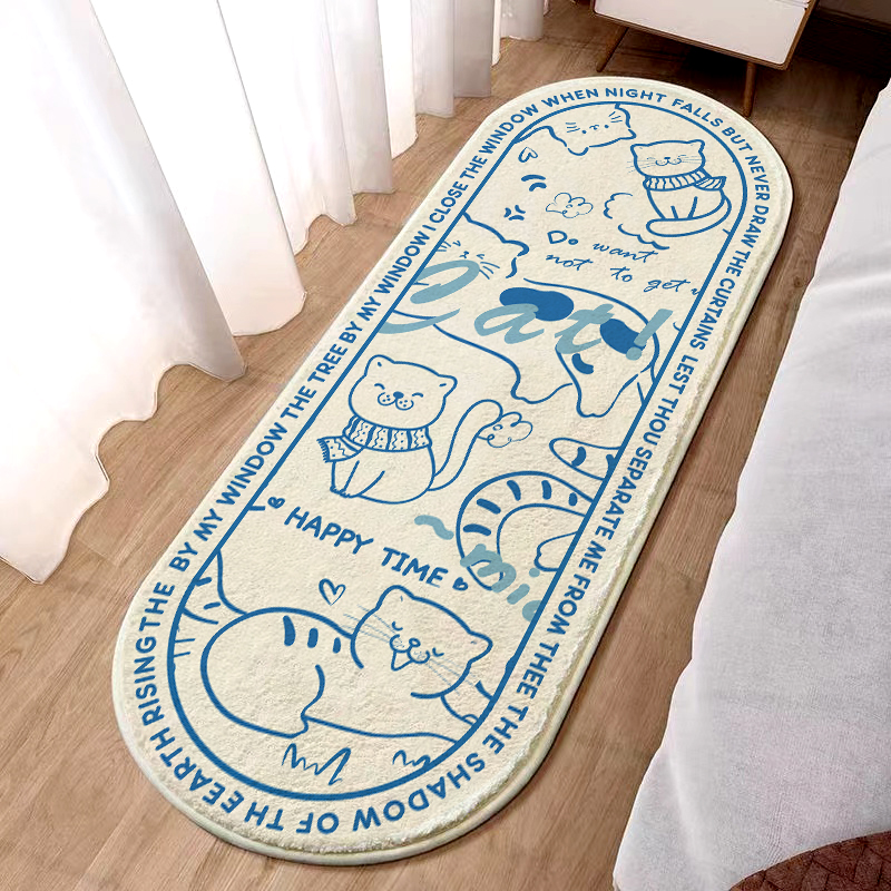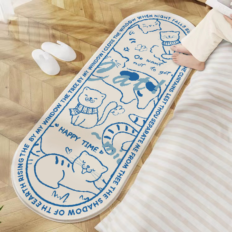 奶油风可爱小猫咪房间卧室床边毯少女心衣帽间长条地垫家用防滑地
