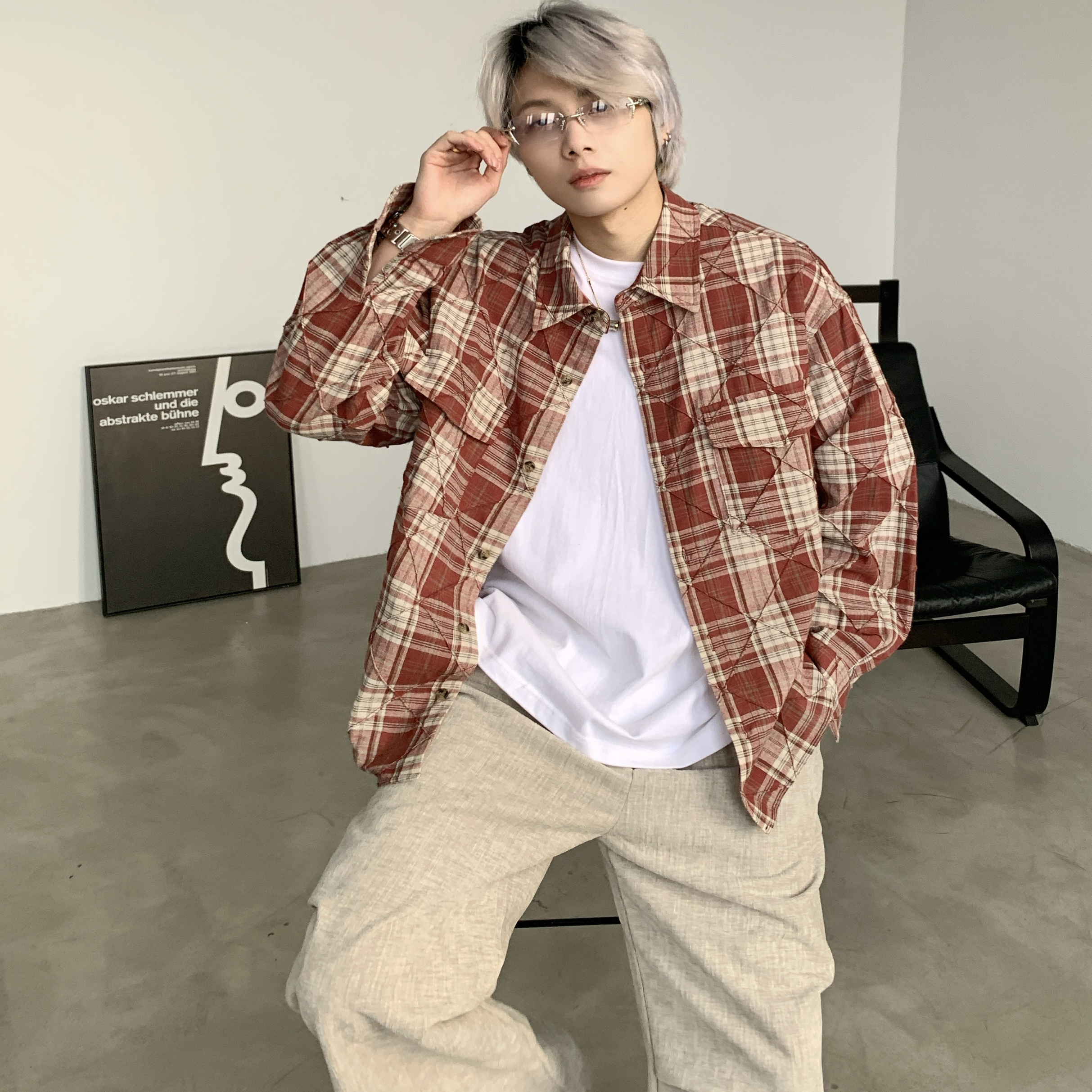 Zih 日系复古菱形格纹长袖衬衫男女秋季新款宽松休闲外套