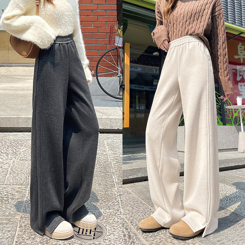 KHV真维斯人字纹加绒阔腿裤女2025新款冬季小个子毛呢休闲直筒裤