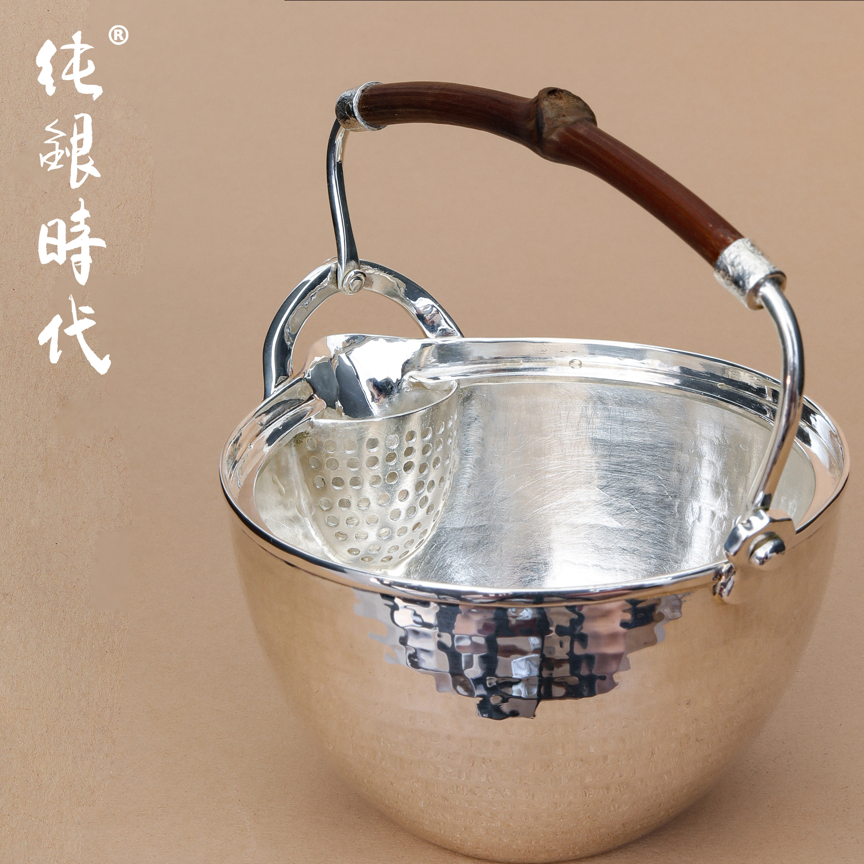 纯银时代纯银手工锤纹泡茶壶