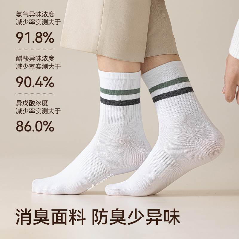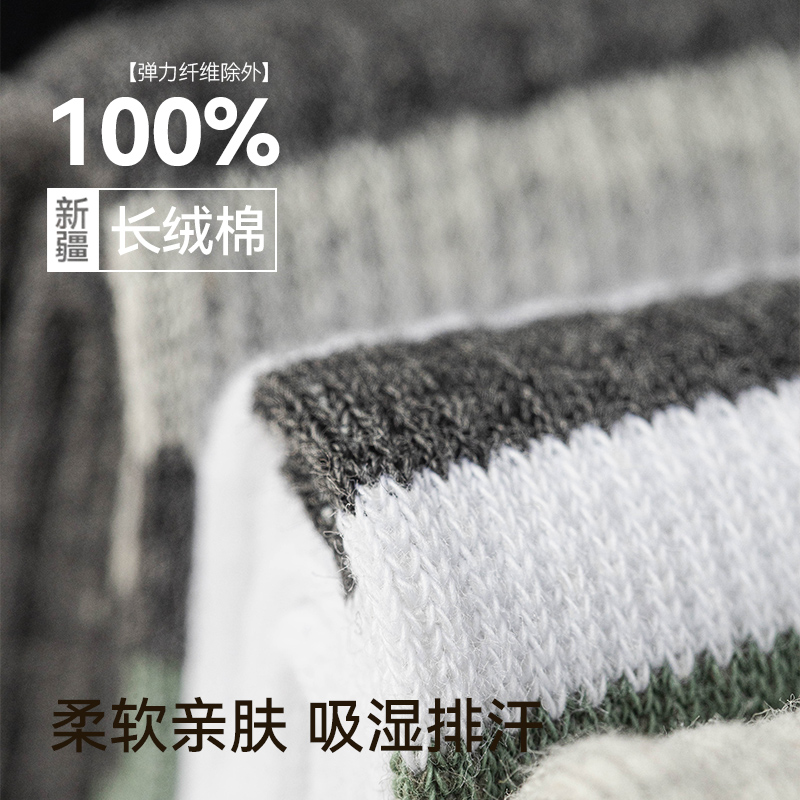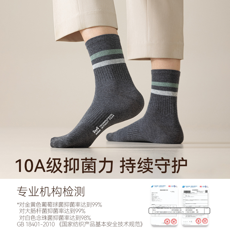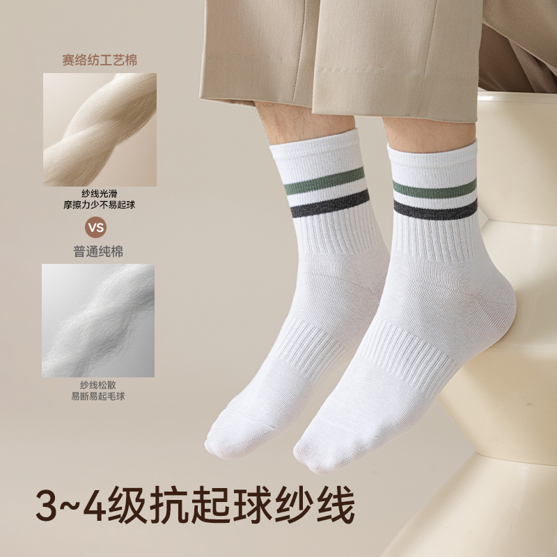 猫人袜子男春秋季纯棉防臭抗菌抗起球吸汗条纹无骨运动中筒袜男士