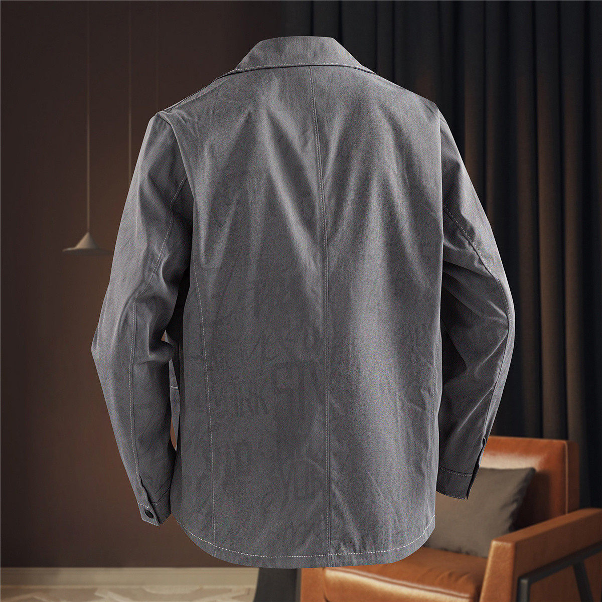 罗蒙春秋明线时尚字母满印翻领男士夹克工装口袋潮流休闲透气外套