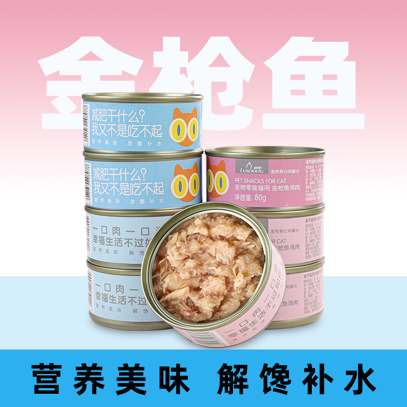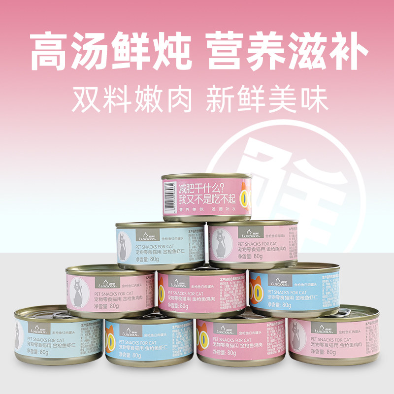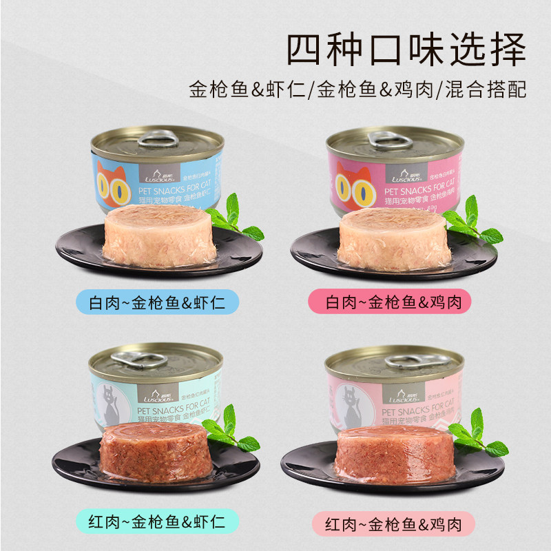 路斯猫罐头80g*12罐宠物猫咪零食金枪鱼虾仁白肉红肉猫罐头湿粮
