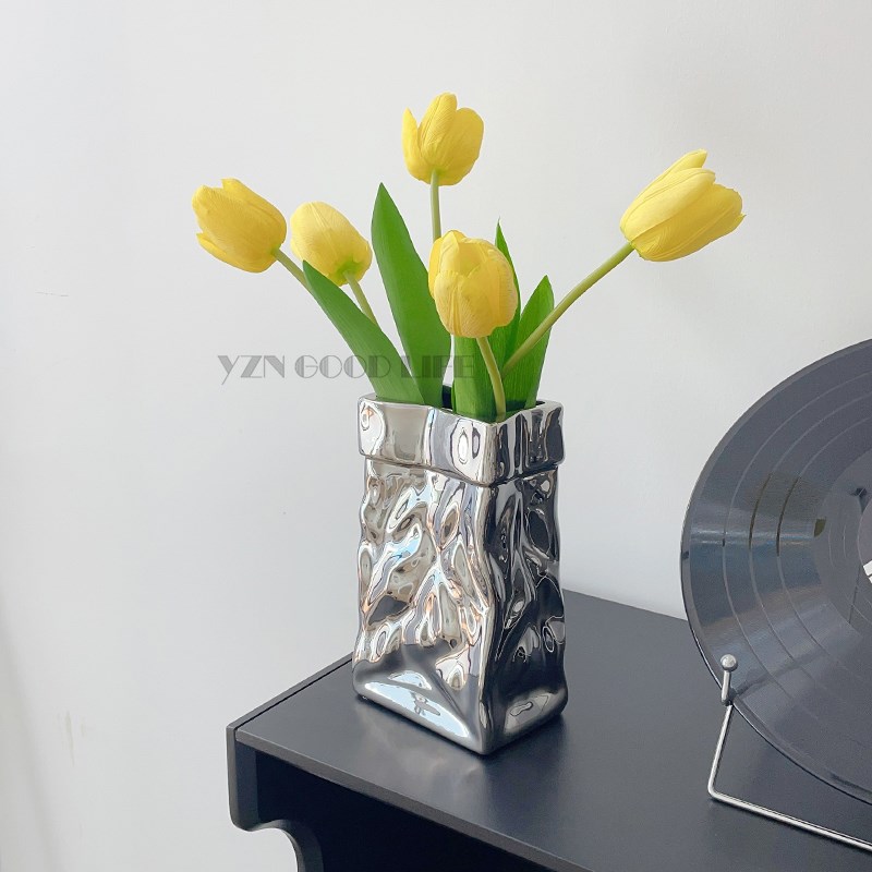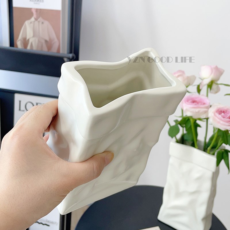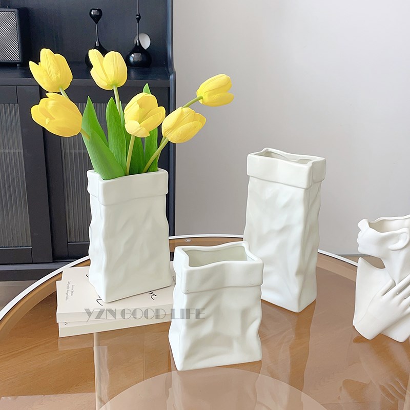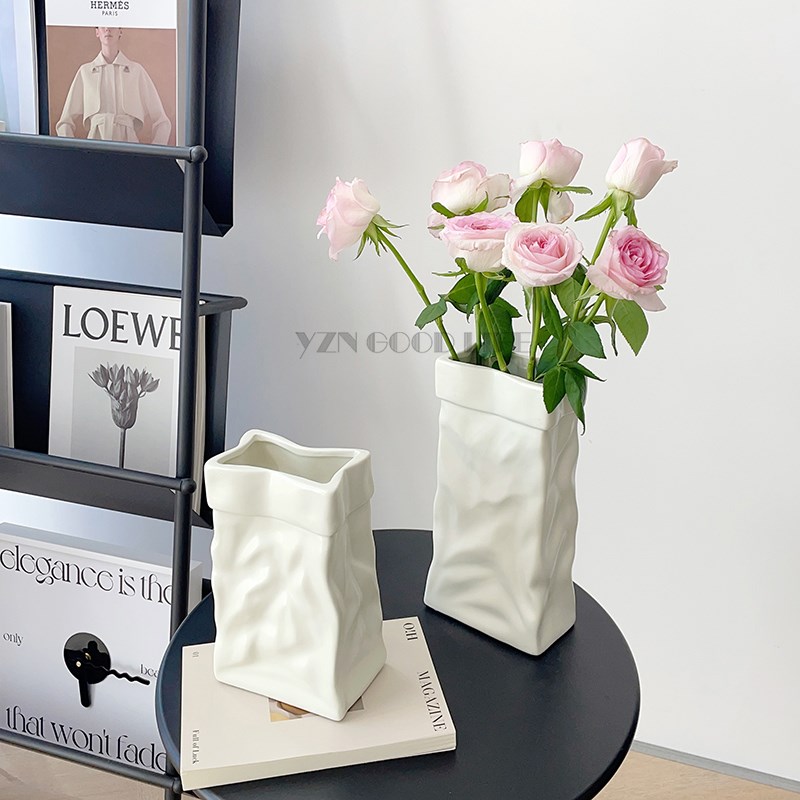 高级感不规则白色花瓶陶瓷客厅餐桌插干花水养装饰摆件样板间轻奢