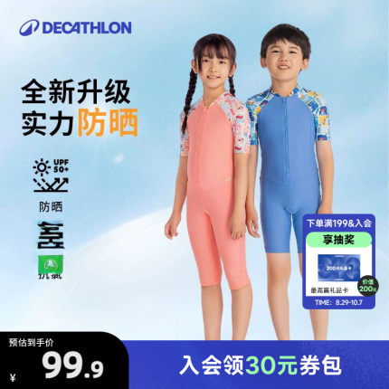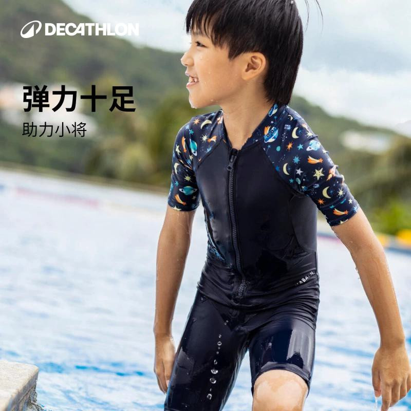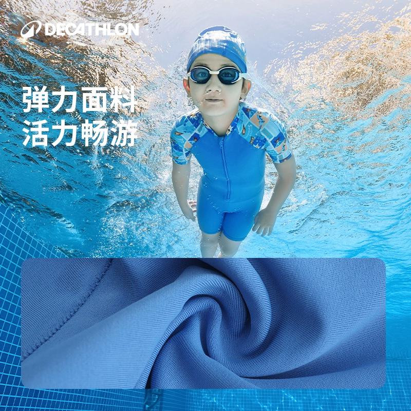 迪卡侬儿童游泳衣宝宝泳衣连体短袖男童女童温泉体育玩水套装KIDK