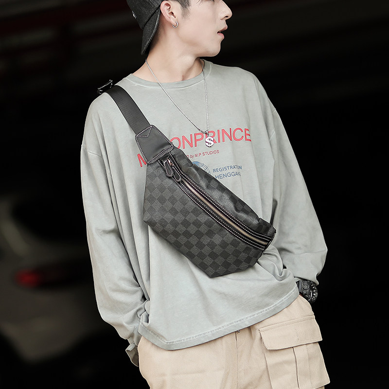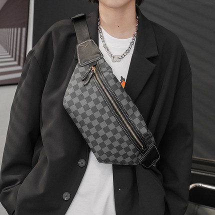 新款格子胸包腰包潮 时尚男包包百搭斜挎胸包潮男女包街头单肩包