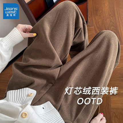GL真维斯西装阔腿裤女2025新款秋冬季灯芯绒休闲高腰直筒裤长裤子