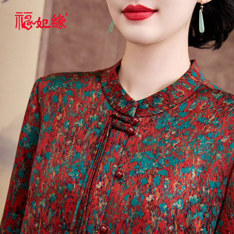 品牌香云纱真丝上衣新品2025夏季桑蚕丝妈妈装衬衫七分袖印花开衫