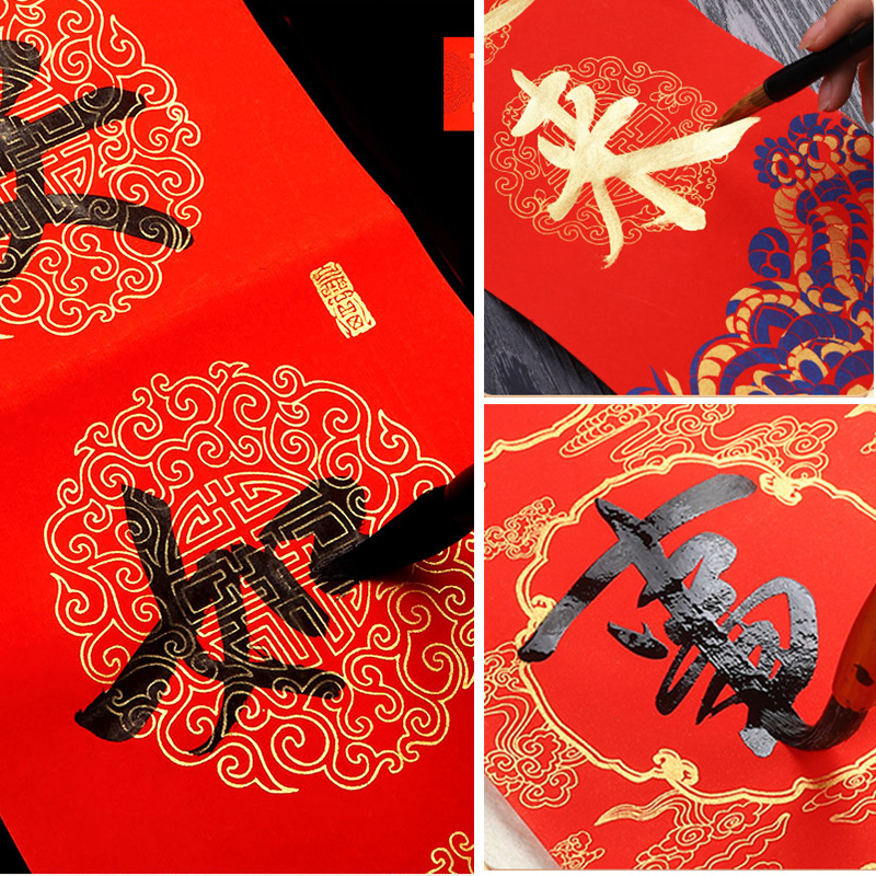 春节蜡染手写空白万年红对联纸半生半熟五言七言春联洒金宣纸