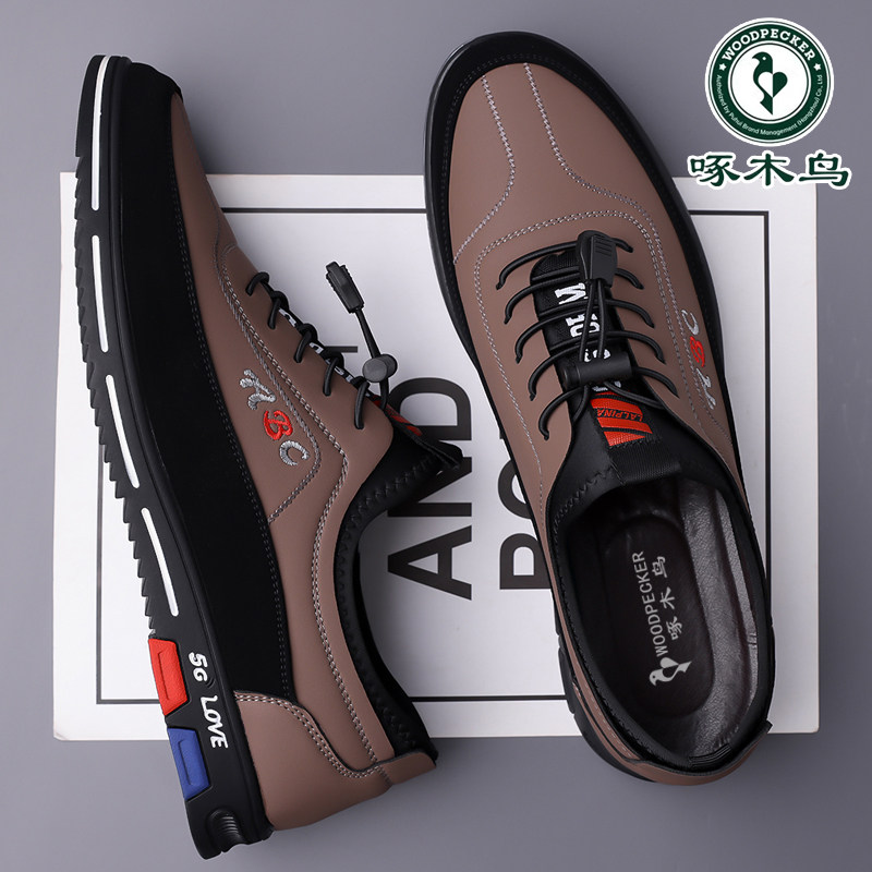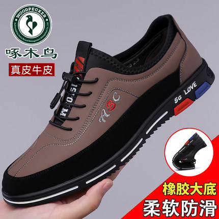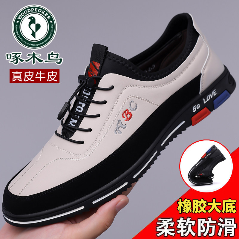 啄木鸟男鞋新款男士休闲皮鞋真皮软底运动鞋透气大码鞋防滑驾车鞋