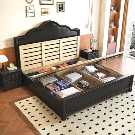美式复古实木床乡村现代简约1.5米主卧1.8米双人轻奢床储物公主床