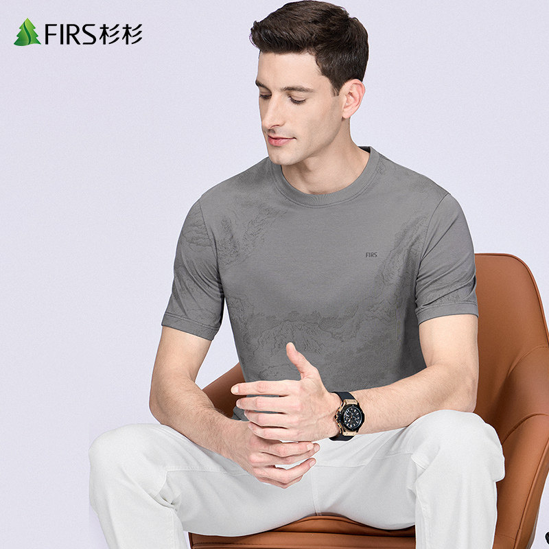 【凉感】杉杉国风印花圆领短袖T恤男装2025夏季新款冰丝轻薄上衣