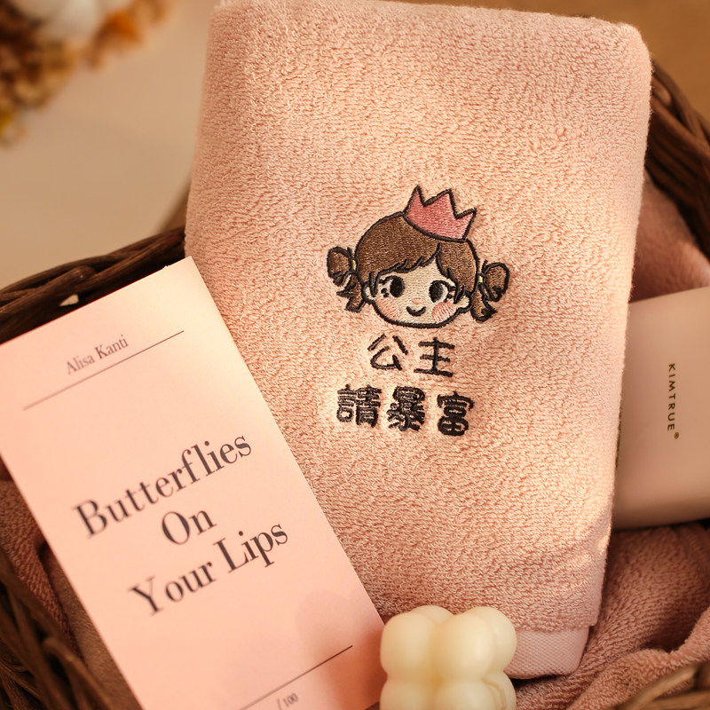 公主请发财情人节刺绣定做可绣字纯棉毛巾少女心王子情侣礼物礼盒