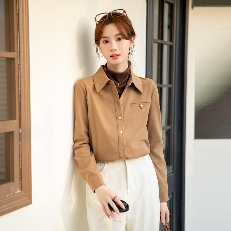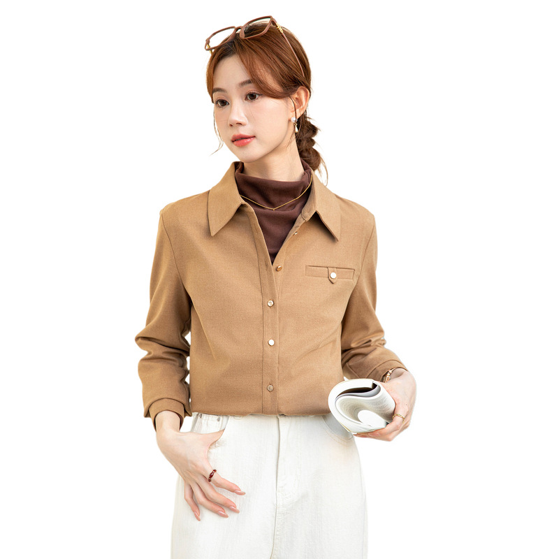 粉色高级感通勤职业加厚磨毛衬衫女秋冬2024新款长袖衬衣外套女