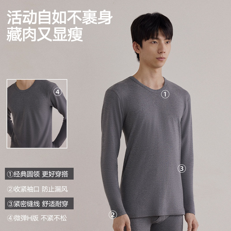 海澜之家纯棉男士保暖上衣2025新款A类全棉打底秋衣10A抗菌防螨