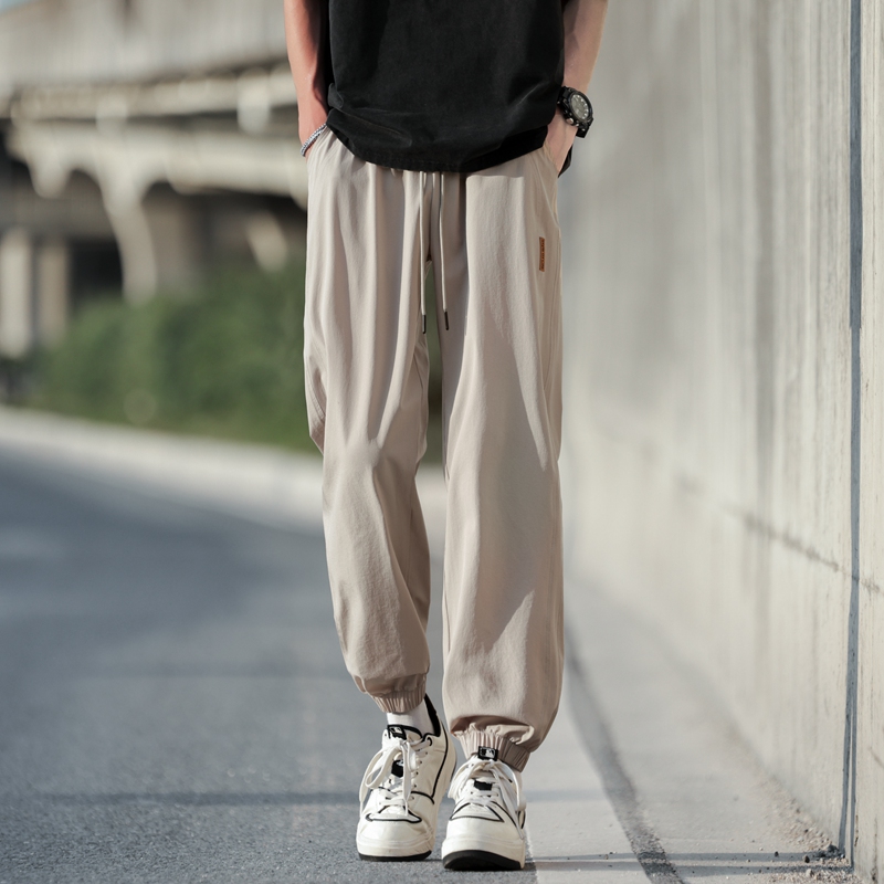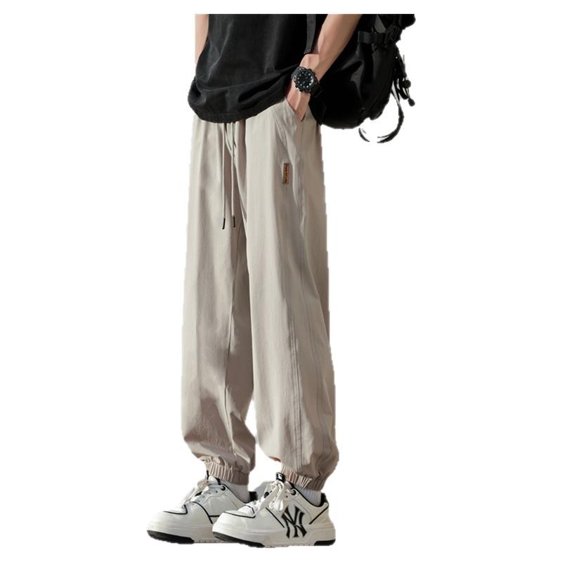 冰丝裤男士夏季薄款透气束脚速干裤卡其色美式潮牌运动休闲长裤子