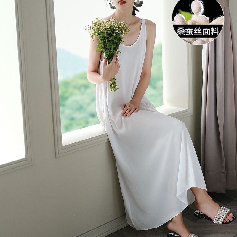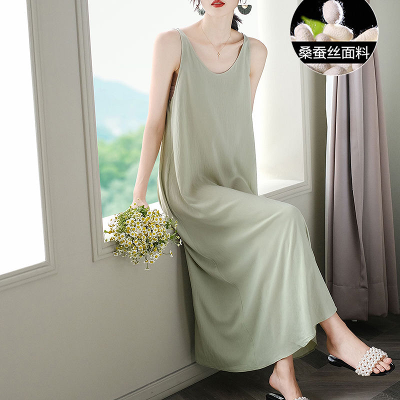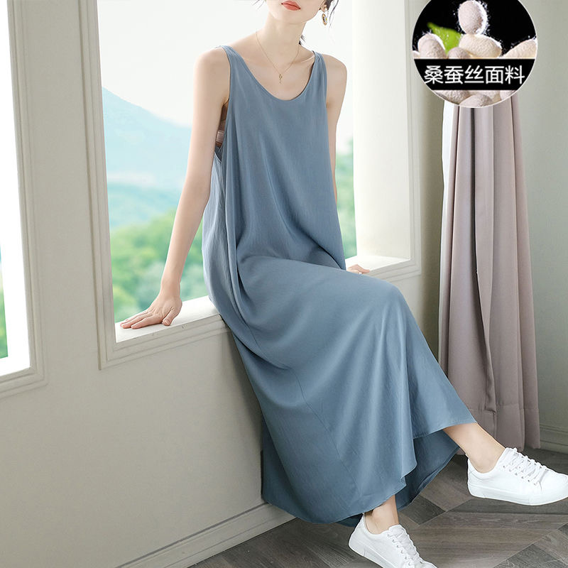 夏季超长款背心吊带裙女2022新款宽松外穿无袖美背连衣裙过膝长裙