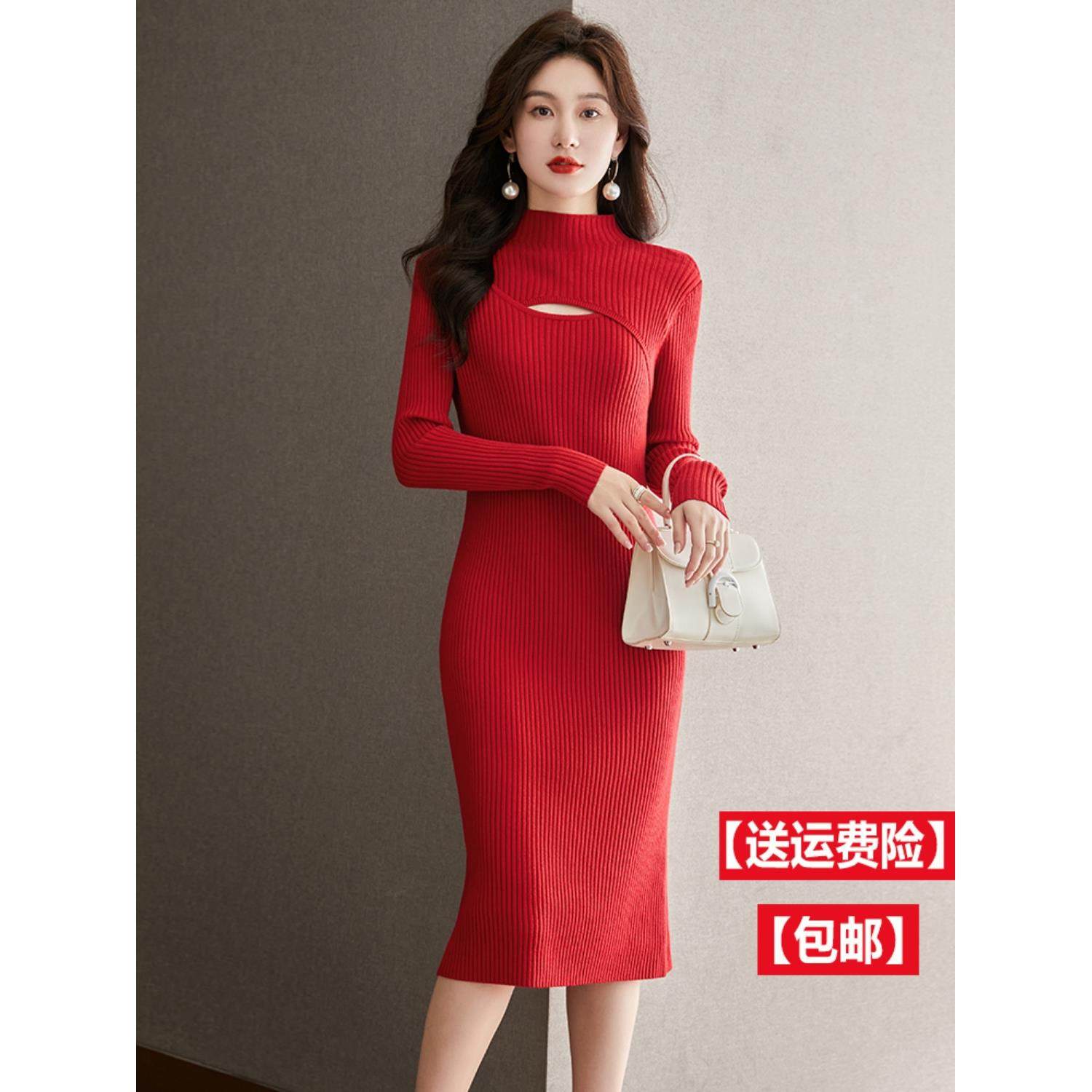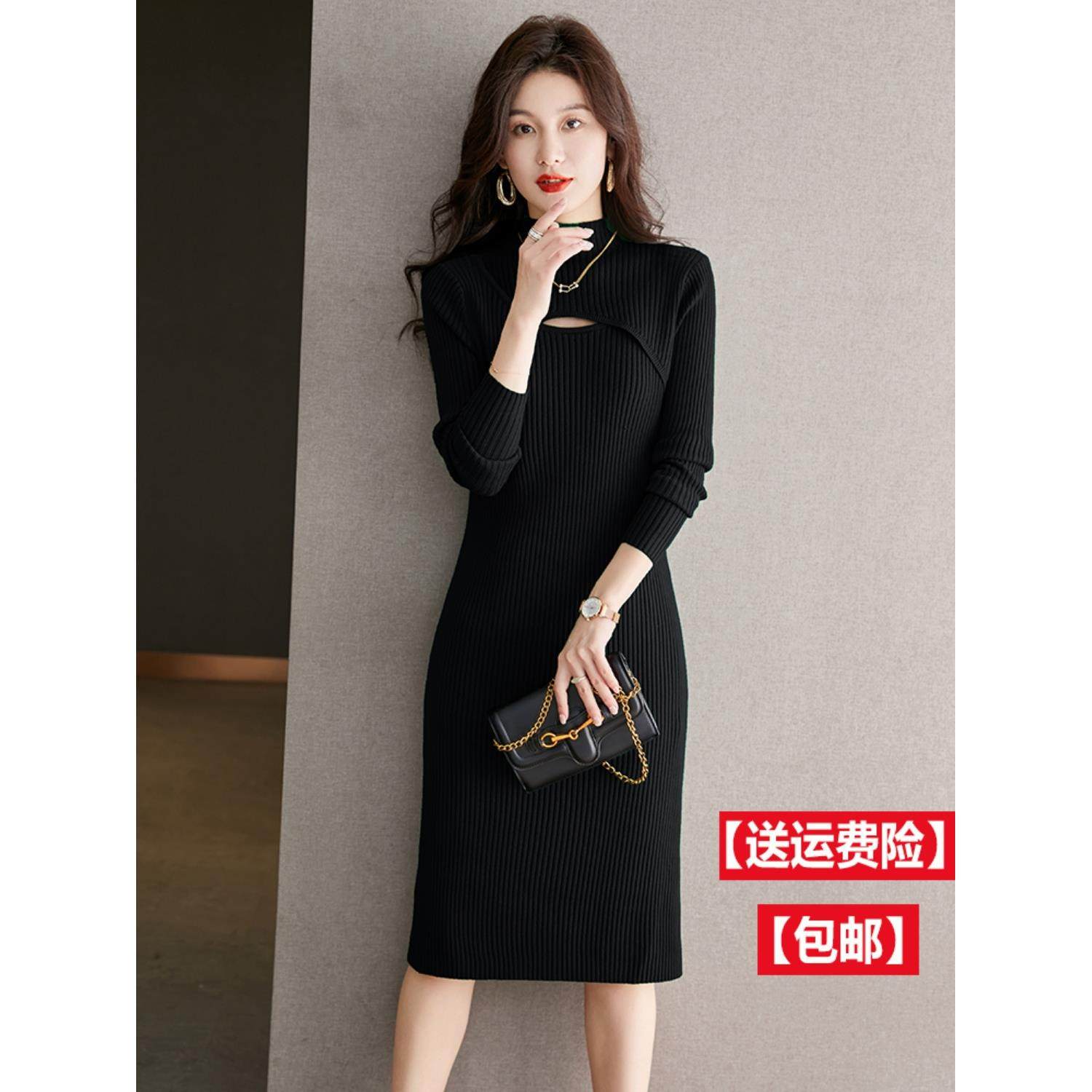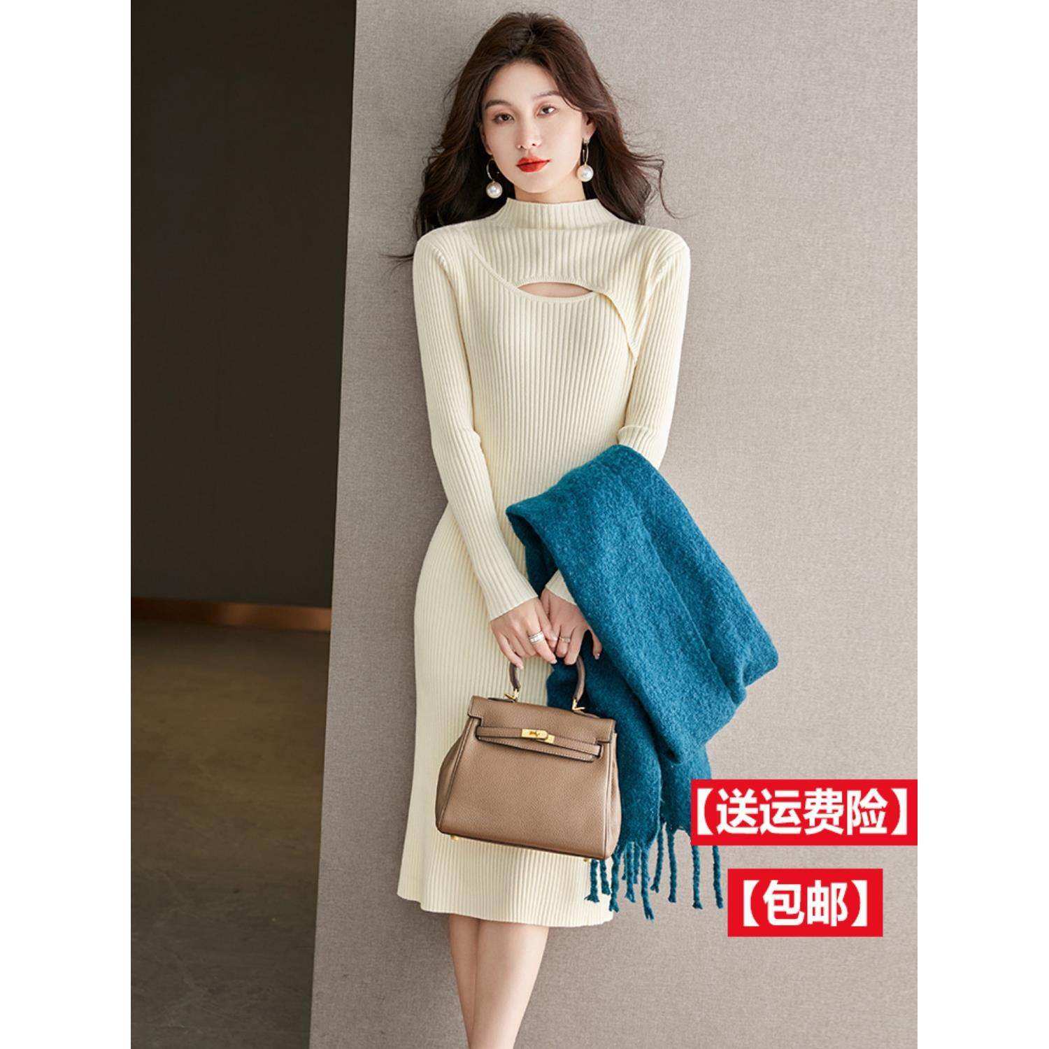 配大衣的内搭羊毛连衣裙女秋冬新款气质修身打底毛衣裙中长款过膝