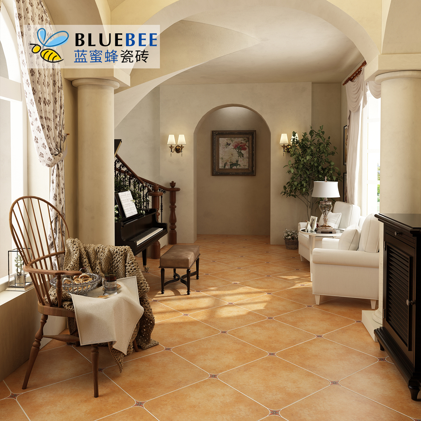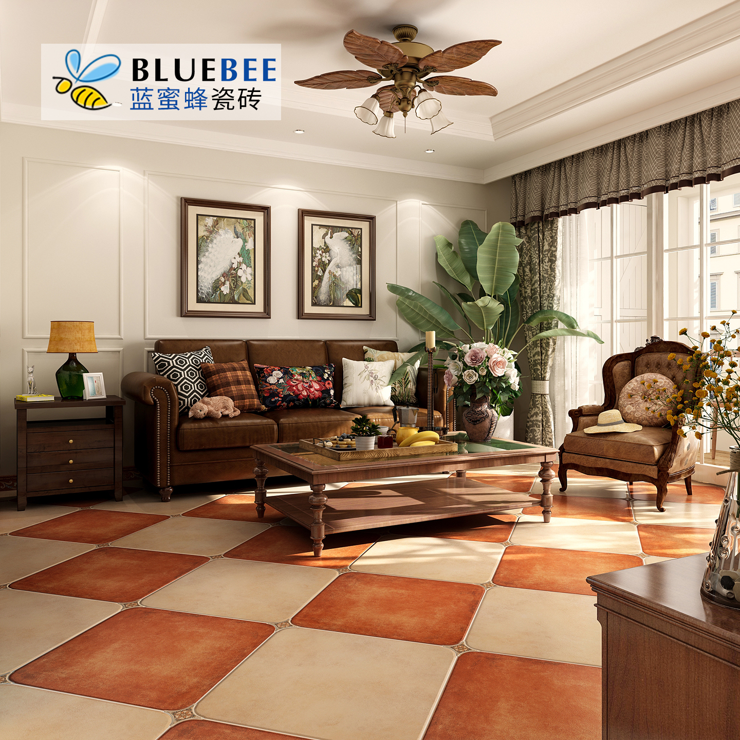 蓝蜜蜂圆角仿古砖客厅别墅法式地砖美式餐厅室内复古瓷砖600花园