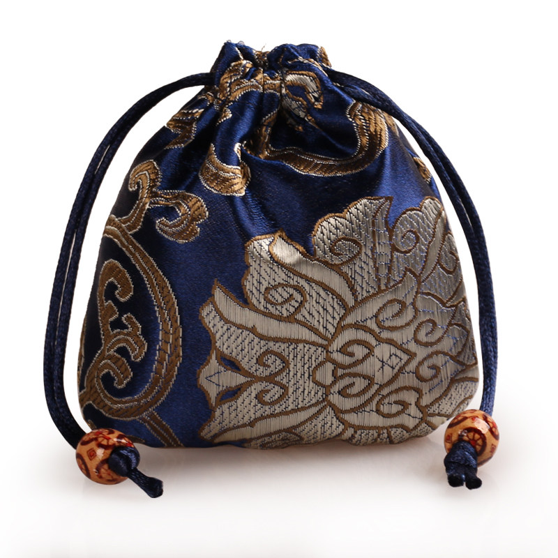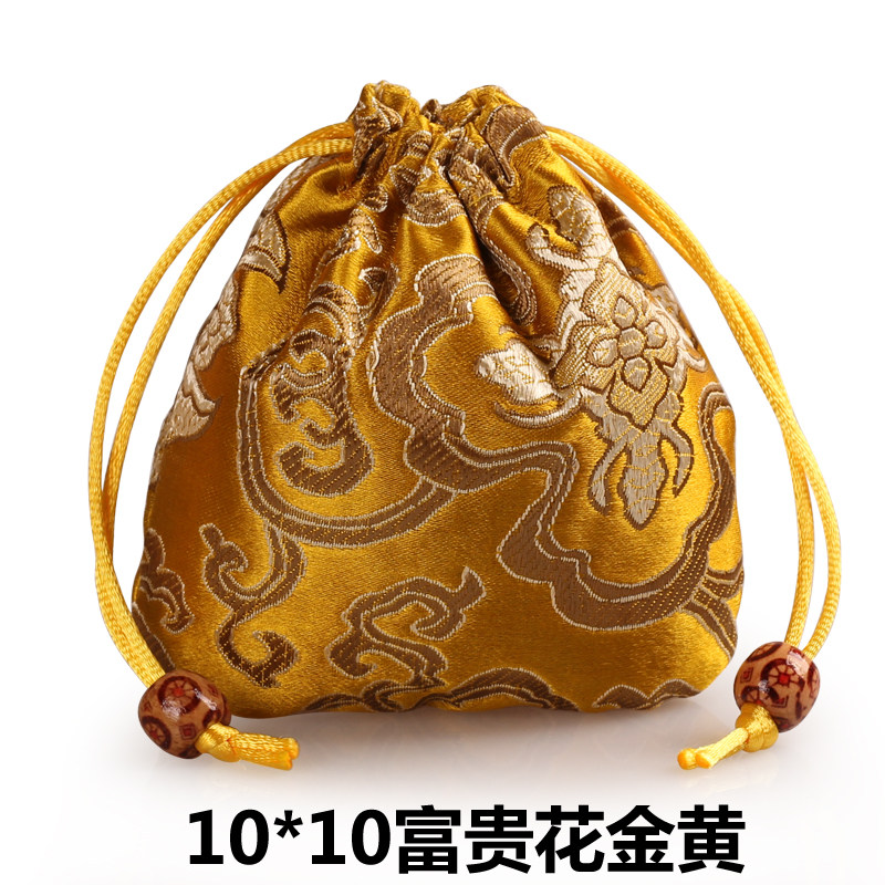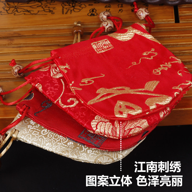 古风织锦饰品袋红色锦囊小首饰袋布袋抽绳束口袋 圆底珠宝收纳袋