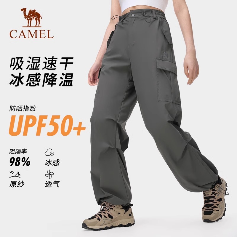 骆驼户外夏季轻薄防晒速干裤凉感透气徒步工装裤降落伞裤休闲裤子