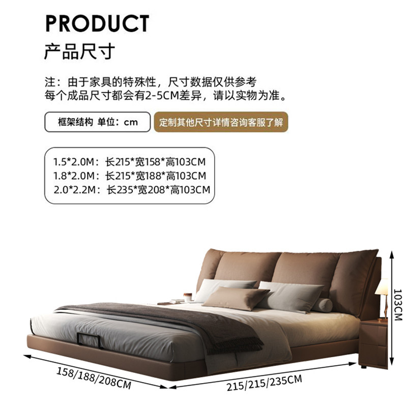 金可儿悬浮床2米x2米2主卧双人床极简轻奢1.8m真皮床网红现代简约