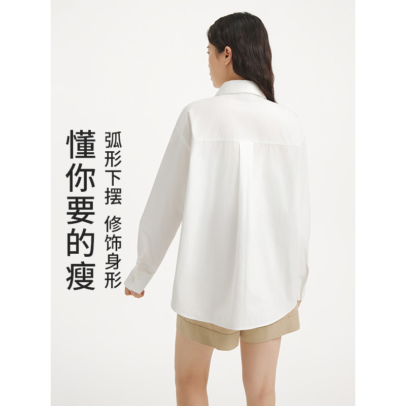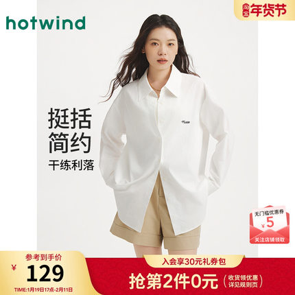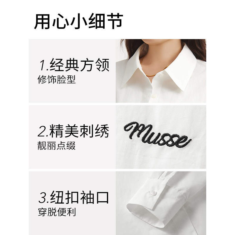 热风女士白色长袖衬衫2025年秋季新款宽松男友风刺绣衬衫内搭上衣