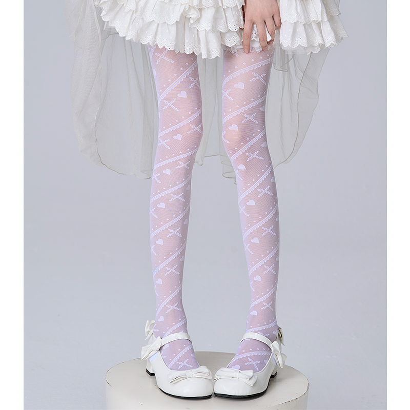 芭蕾少女风竖条花边白丝袜打底袜子女日系JK洛丽塔纯欲白色连裤袜