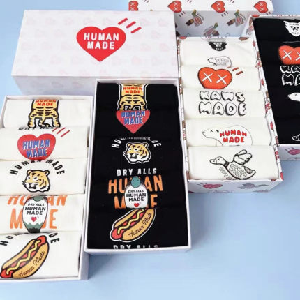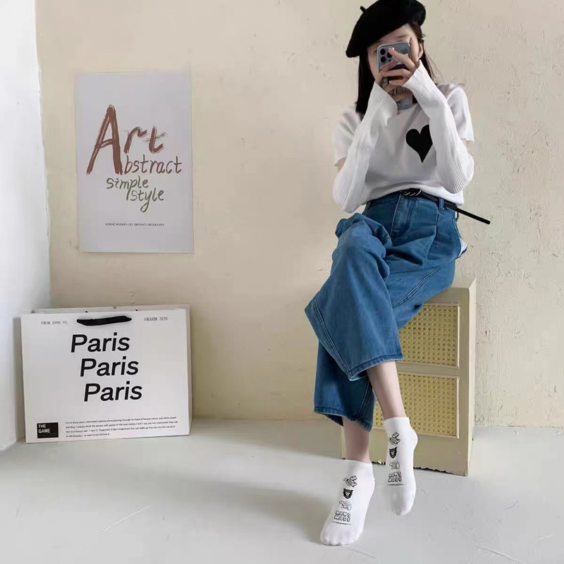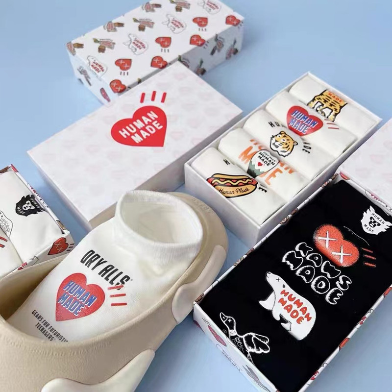 5双盒装潮牌爱心北极熊印花袜子男女短袜春夏薄款ins潮流纯棉船袜