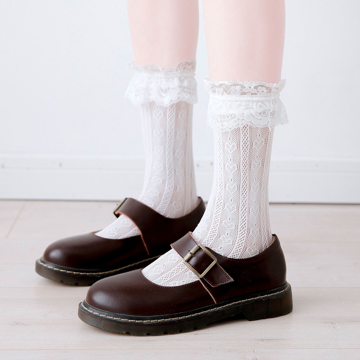 白色蕾丝洛丽塔小腿袜jk袜子女中筒长筒花边日系白丝袜半腿lolita