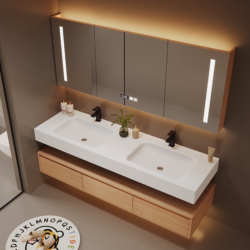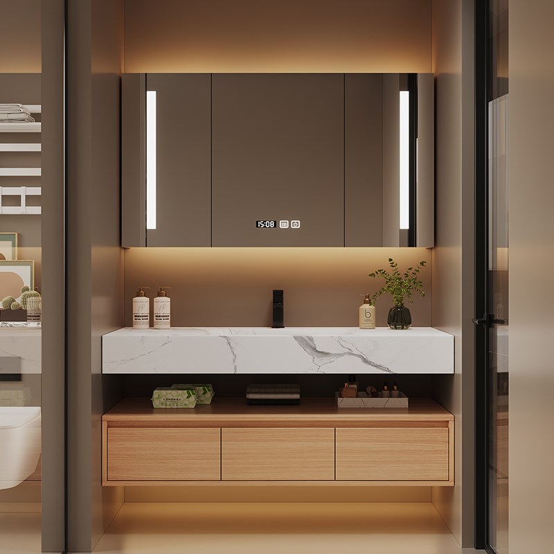 设计师定制轻奢岩板热弯一体盆浴室柜组合卫生间洗手台洗漱台盆柜