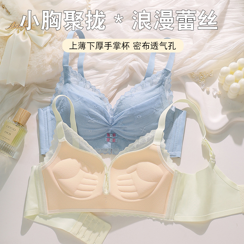 2024新款内衣少女小胸聚拢无钢圈调整型按摩手掌杯蕾丝文胸罩