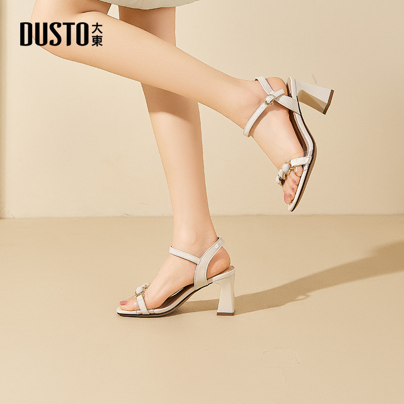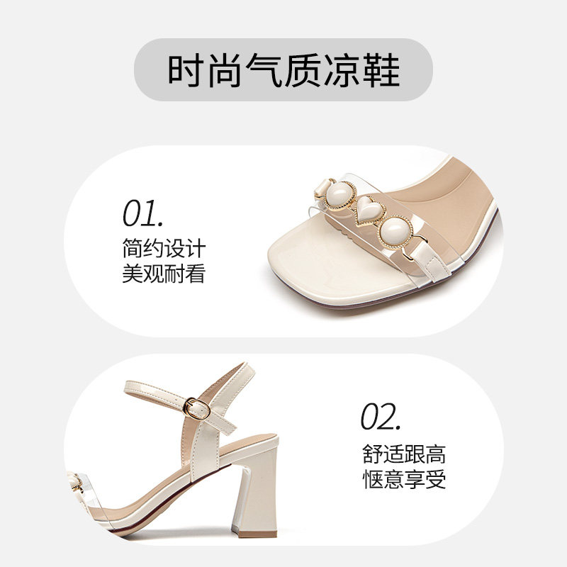 〖WP〗大东一字带凉鞋女鞋夏季新款简约粗跟高跟一字扣饰扣X1032