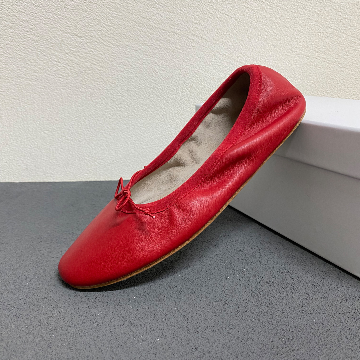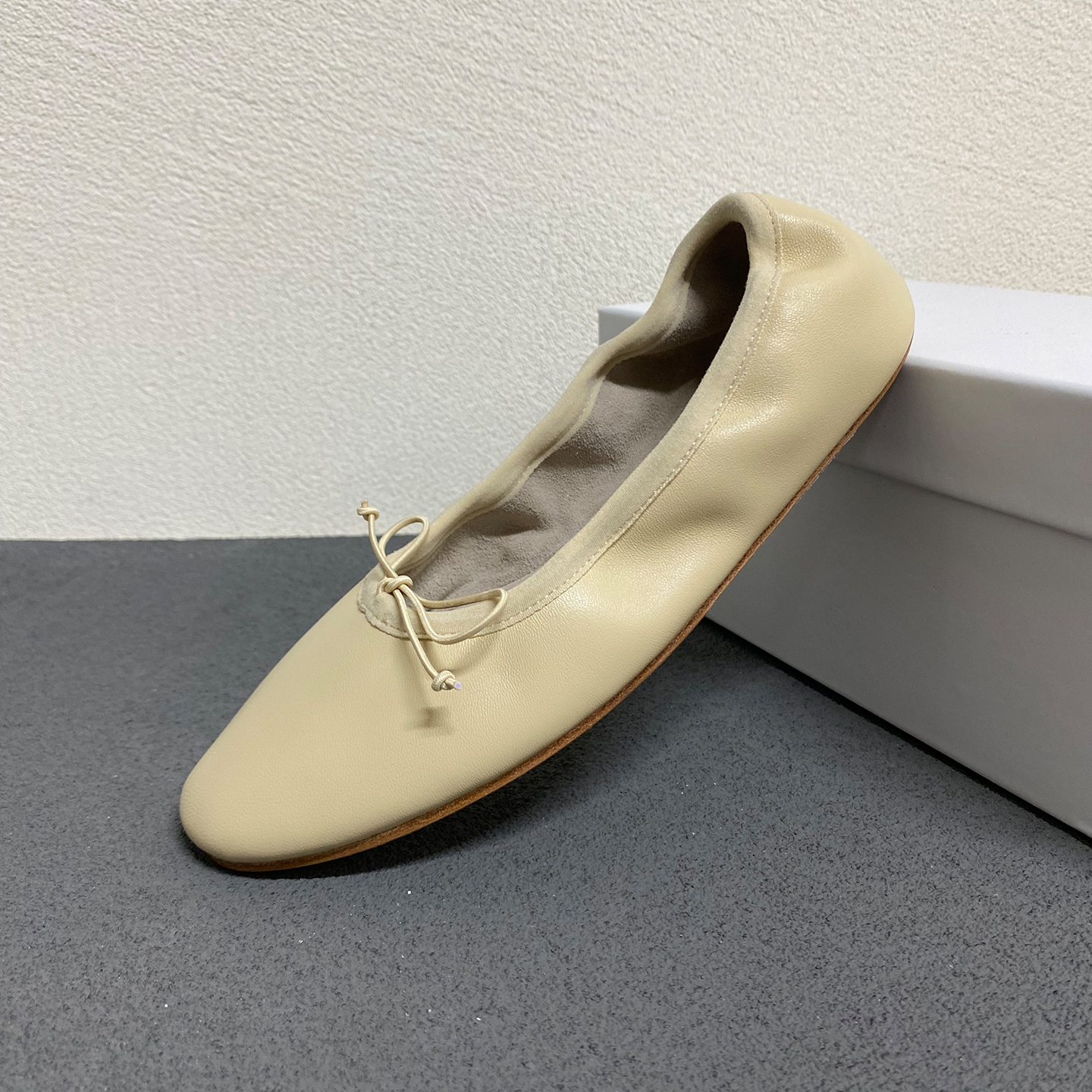 row风法式复古蝴蝶结羊皮芭蕾舞鞋女平底简约百搭超柔软舒适单鞋