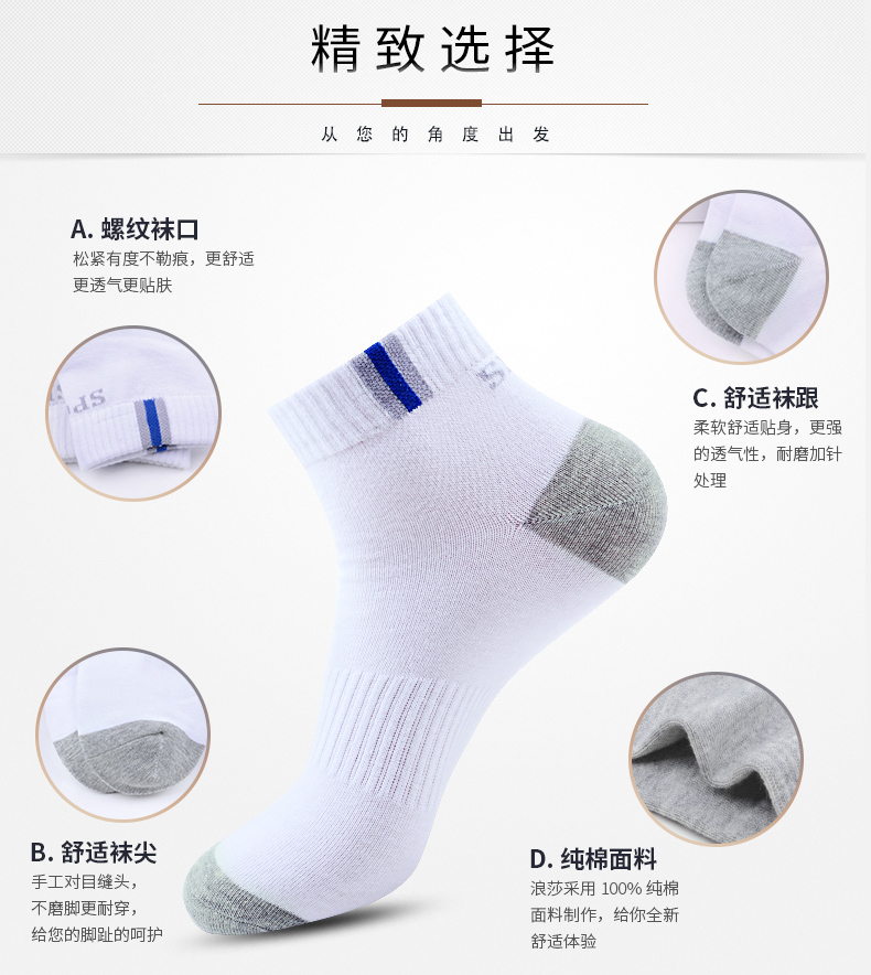 防臭吸汗全棉运动秋冬季男士短袜