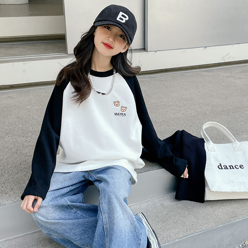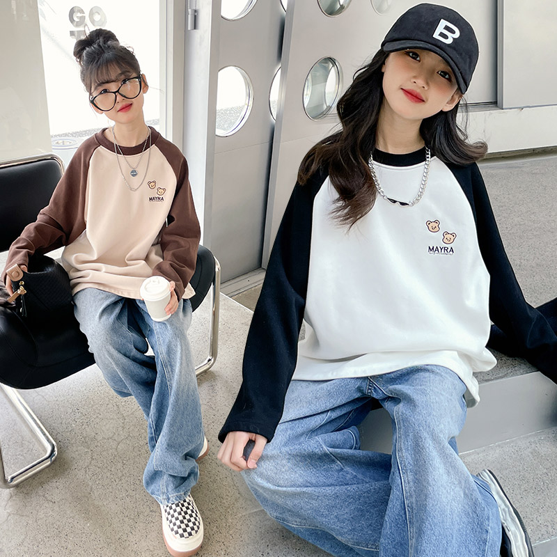 女童长款T恤内搭儿童中大童体恤打底衫上衣春秋卫衣洋气秋冬加绒