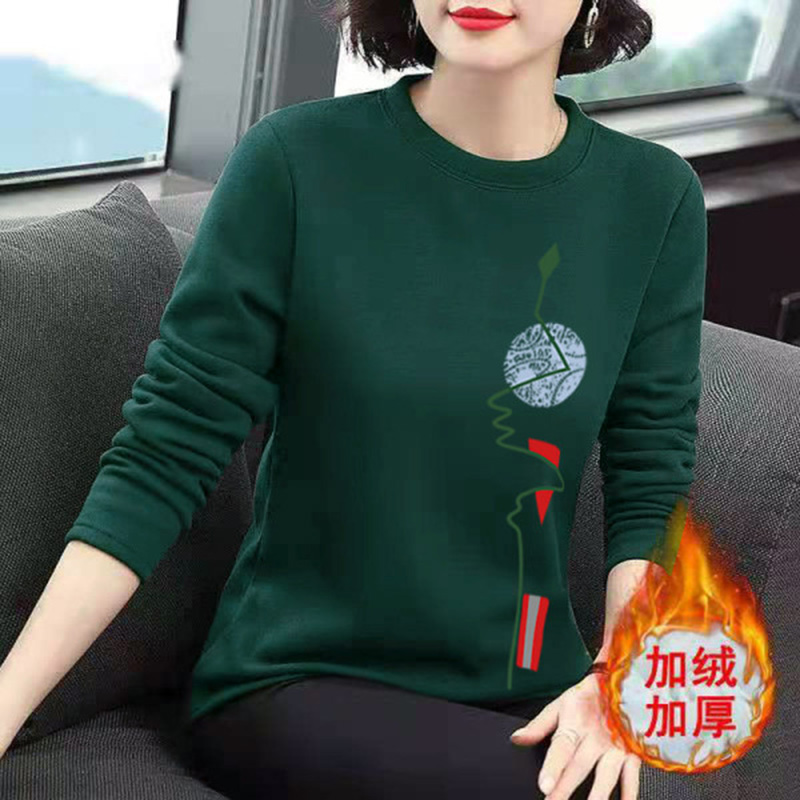 新款加绒加厚卫衣打底衫女妈妈冬装宽松圆领大码字母印花长袖上衣