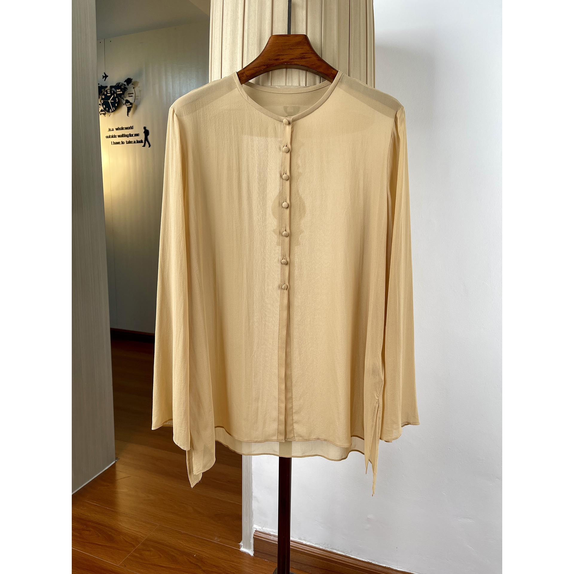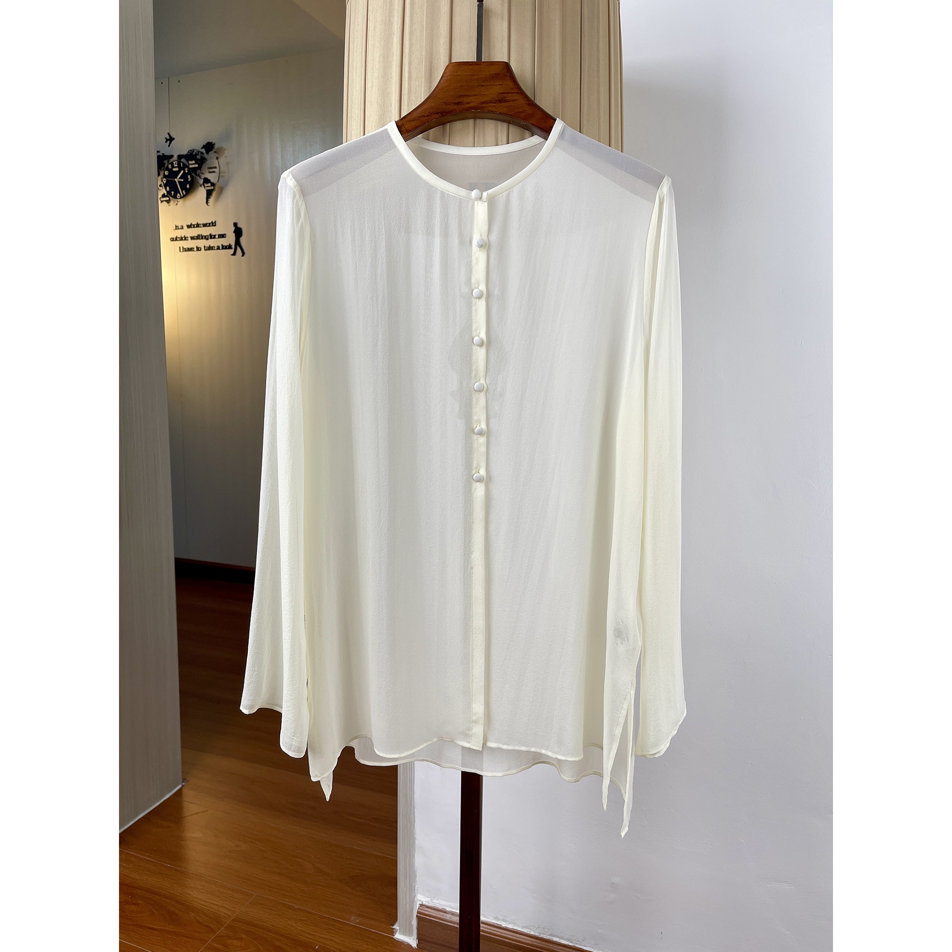 轻薄透气桑蚕丝开衫衬衣女夏季 真丝乔其纱防晒上衣遮屁股中长款