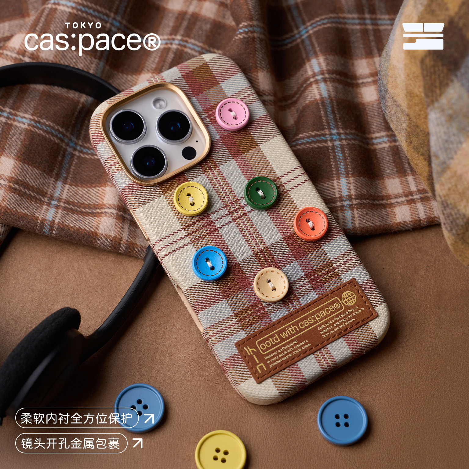 壳空间原创ootd with cas:pace适用苹果15iPhone新款16手机壳带手链复古保护套格子布料秋冬14promax