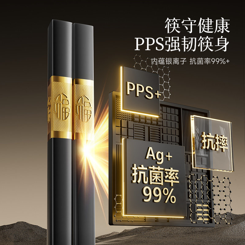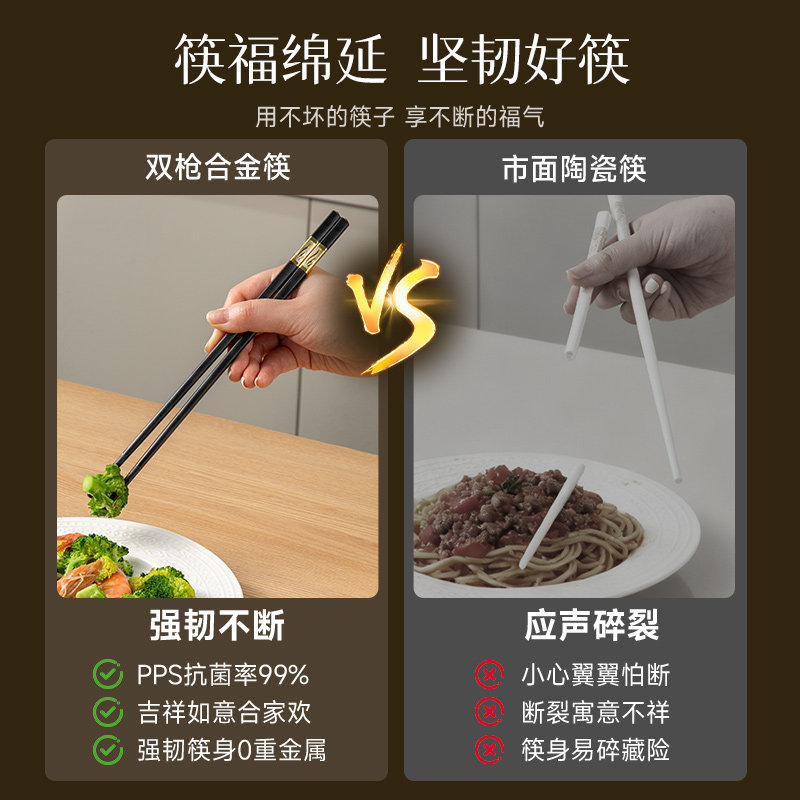 双枪抗菌合金家用筷子