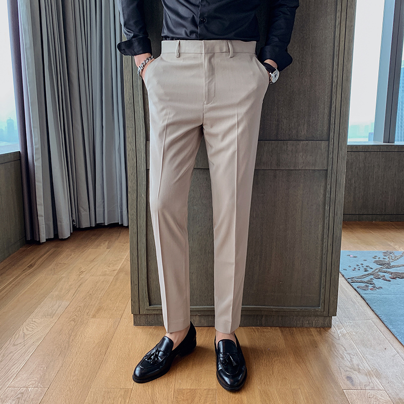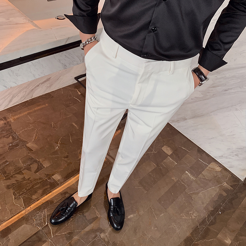 坠感休闲九分西裤男士韩版修身夏季白色小脚裤抗皱英伦纯色西装裤