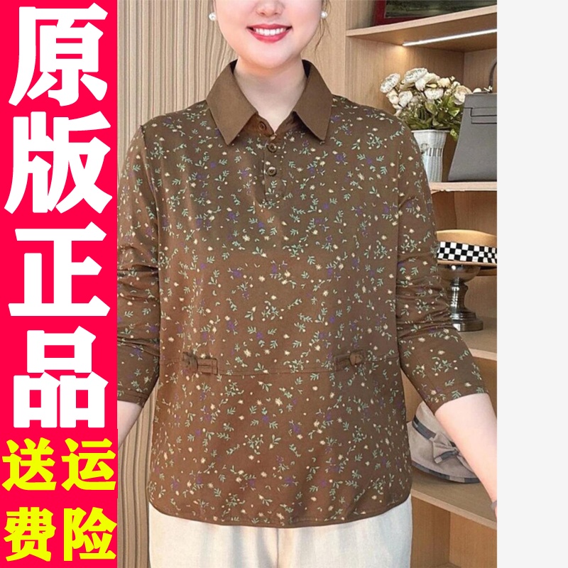 99 洋气POLO领碎花长袖女士衬衫C中年妈妈装秋款时尚百休闲