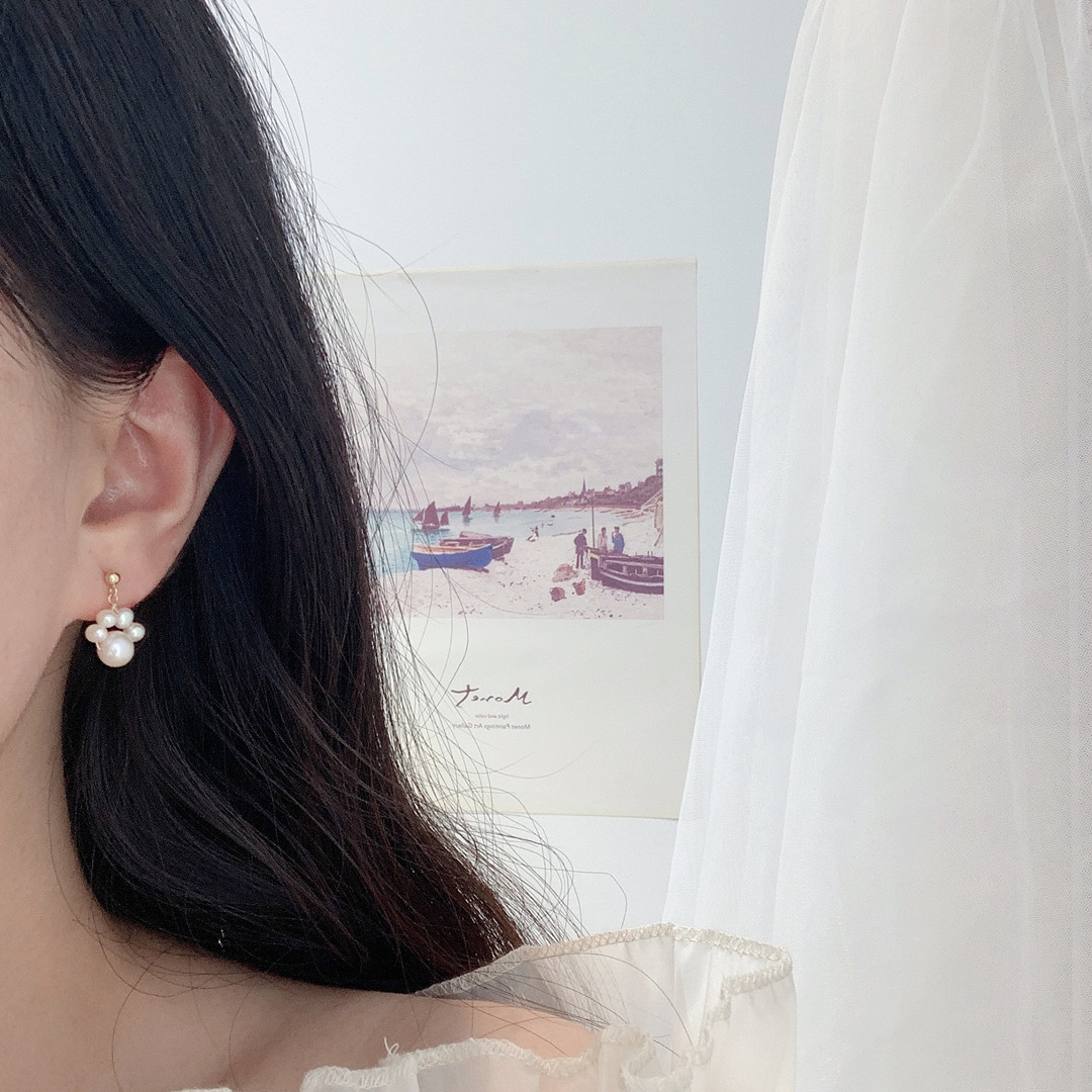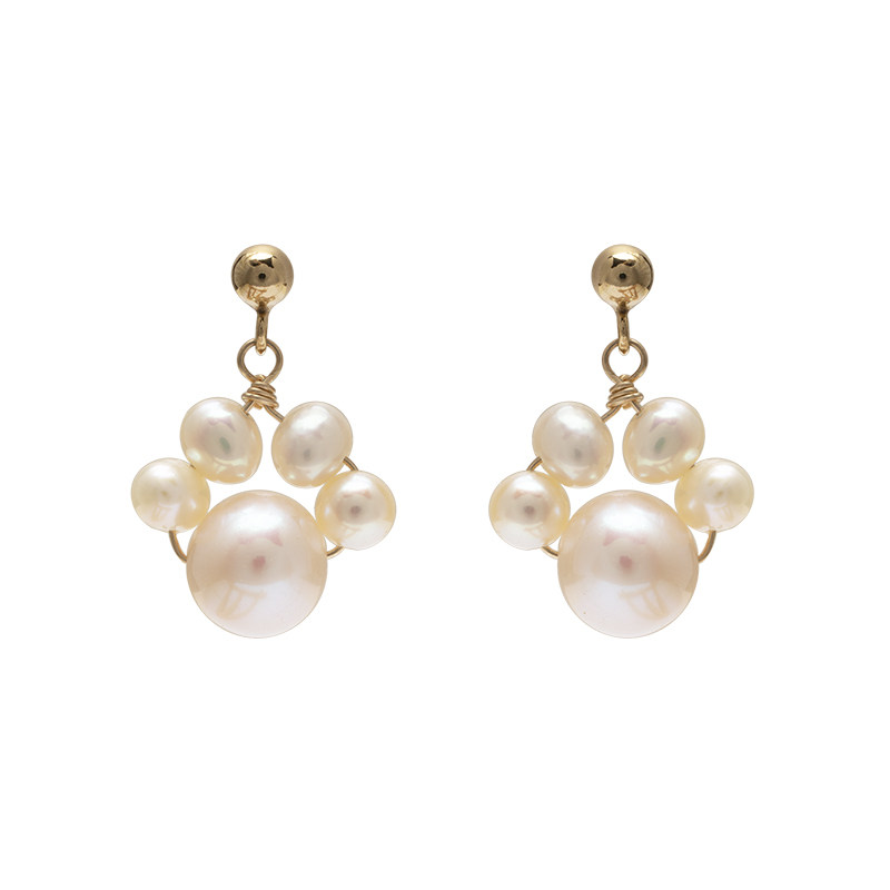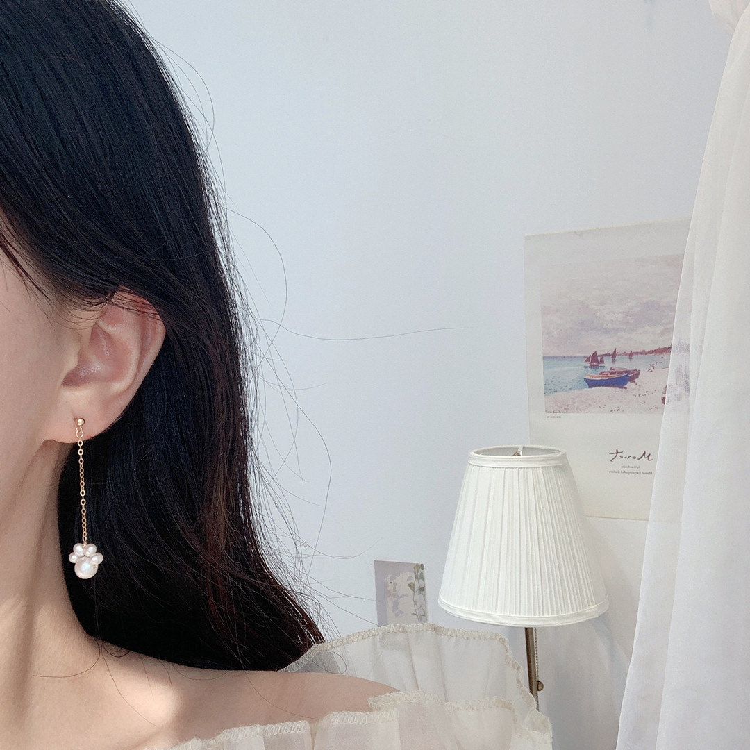 CECILIA原创可爱小猫爪天然珍珠14K包金耳环耳钉长款ins少女耳夹