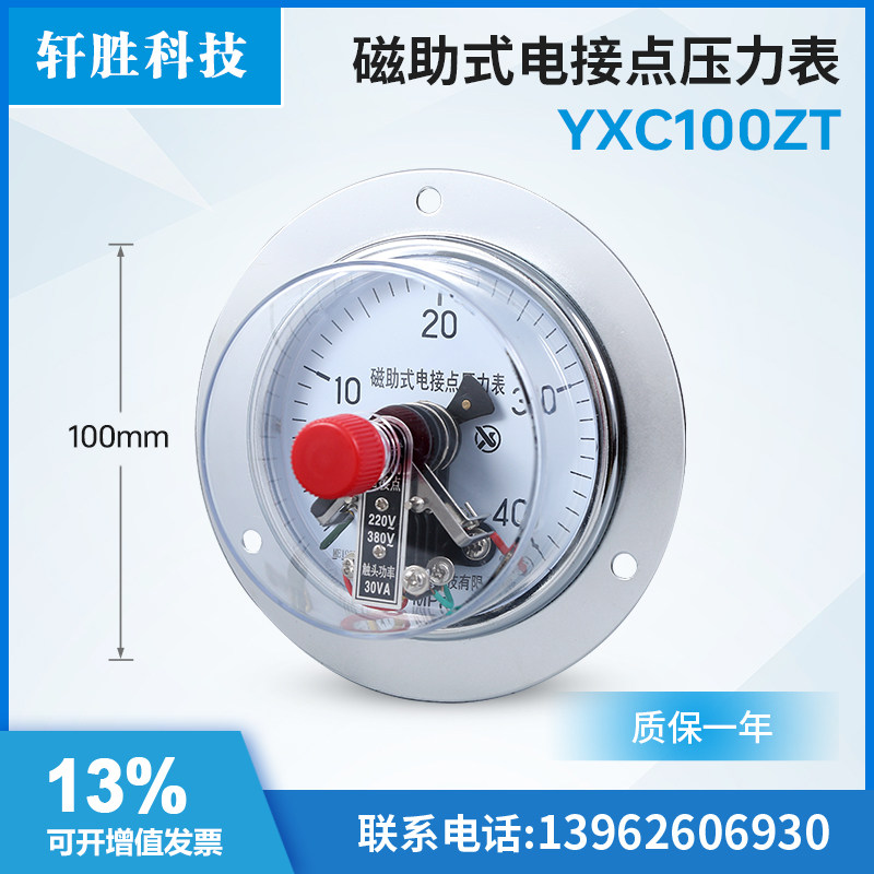 YXC-100ZT 40MPa 磁助式轴向带边电接点压力表 上下限控制压力表