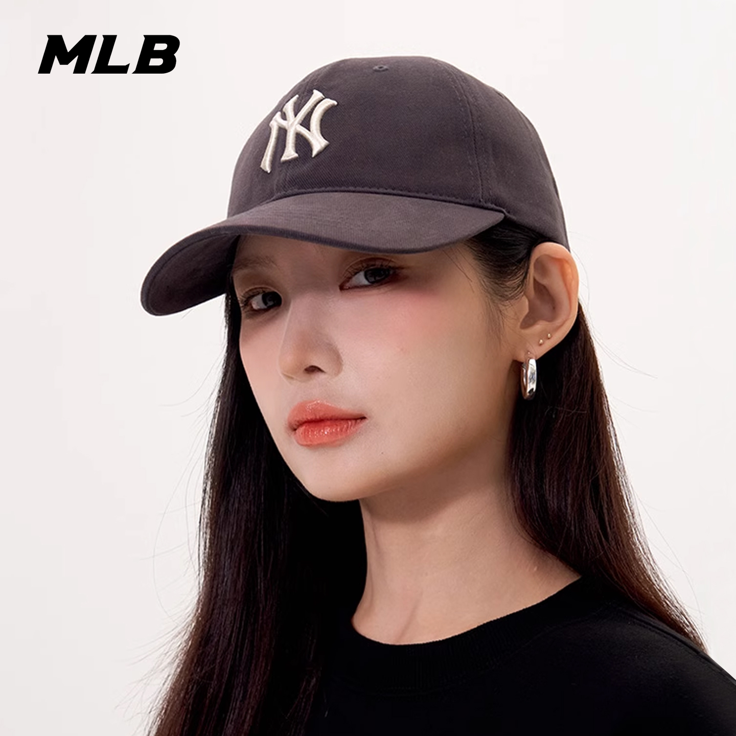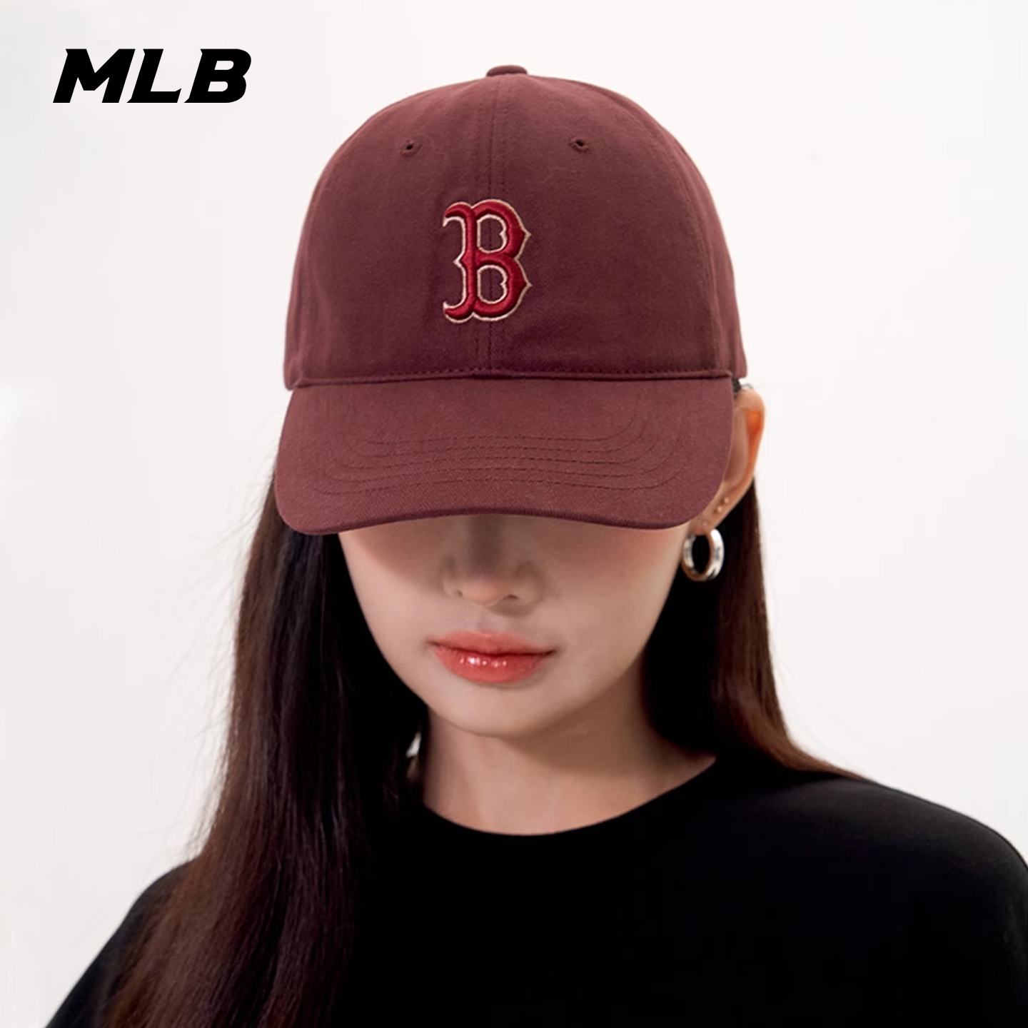 MLB韩国专柜正品男女情侣时尚遮阳刺绣酒红潮流棒球帽25秋季新款